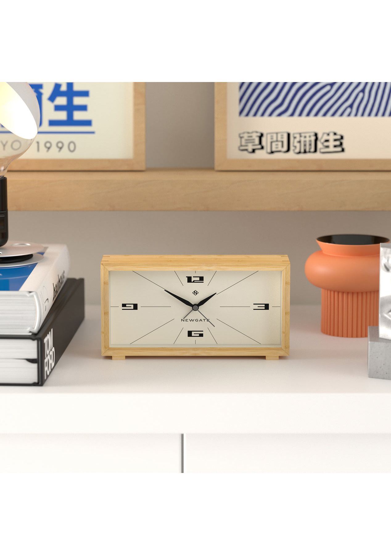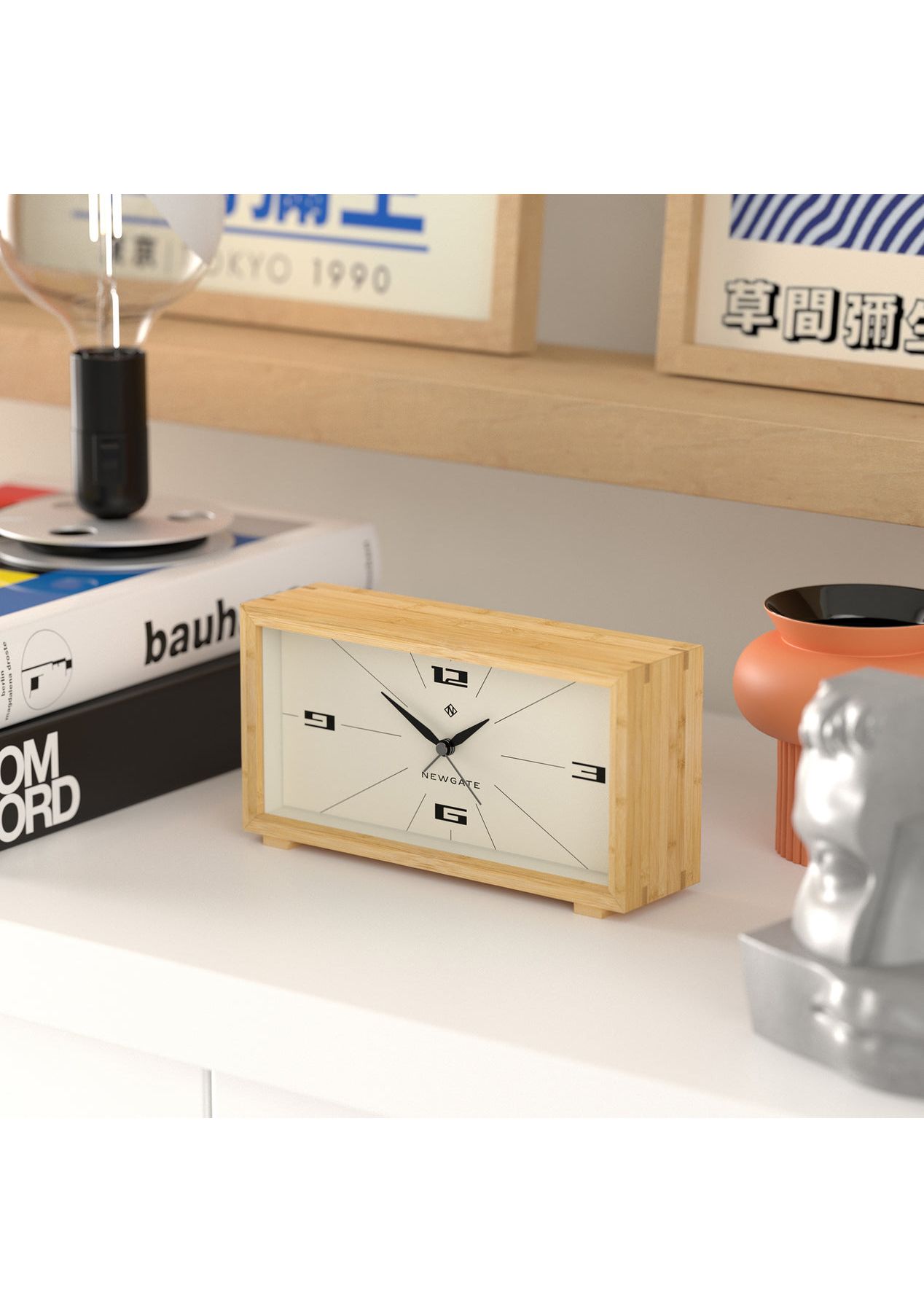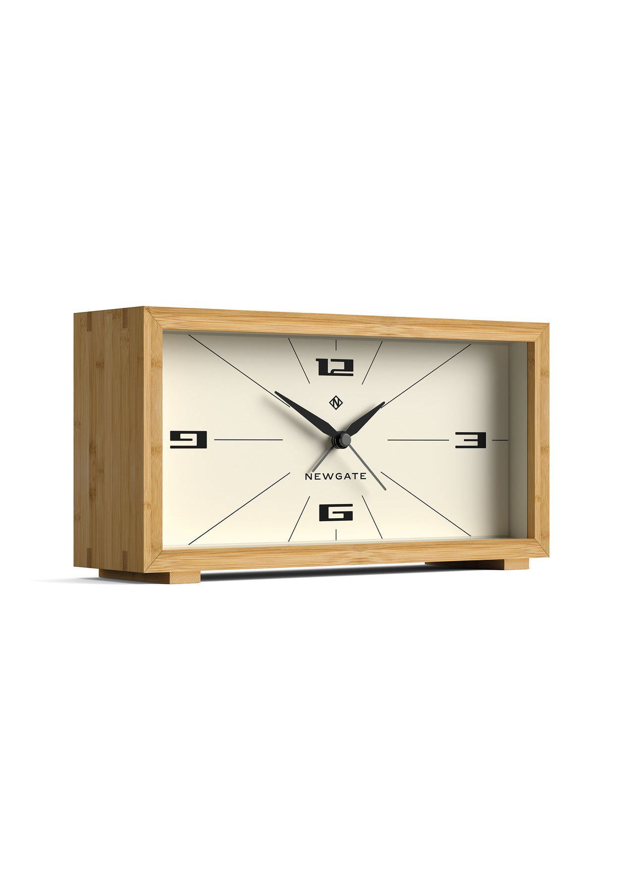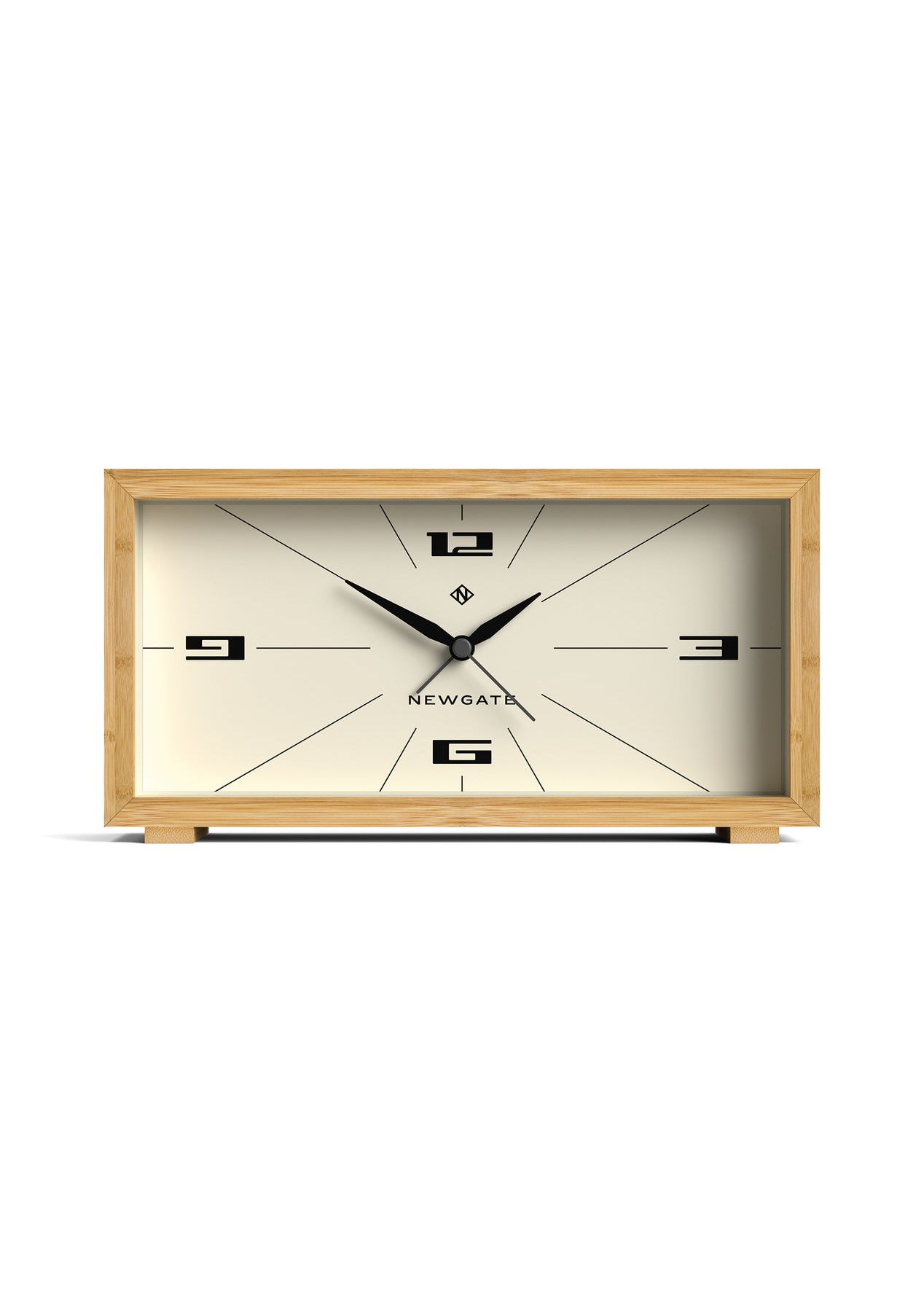Newgate Lemur Alarm Clock A mid-century modern alarm clock with an emphasis on the modern. This space-age design blends a contemporary cream face and bamboo case with a retro-inspired dial and simplified numerals. Bamboo is highly renewable. Raw bamboo is converted, using the most fascinating process, into the solid blocks that we then turn into clock cases. Can you believe some species of bamboo grow up to an inch per hour! Known as ‚silent sweep‚ in the industry, the hands move in a constant sweeping motion rather than a stepped tick. So you won‚t hear any ticking but if your hearing is particularly sensitive in a completely silent room you may hear a very quiet whirring. - Material: Bamboo, Metal, Glass- Colour: Bamboo- Movement: Quartz 'Silent Sweep'- Power: 1 x AA (Not Included)- Dimensions: LWH 6 x 22 x 11.5cm- Weight: 0.42kg