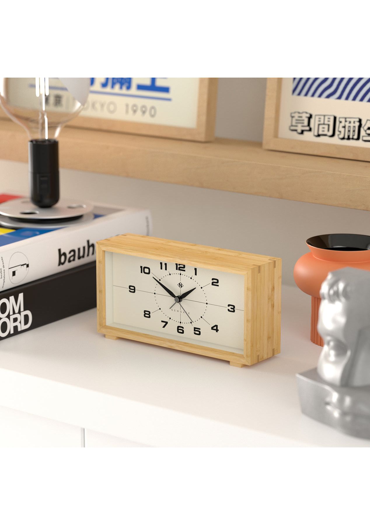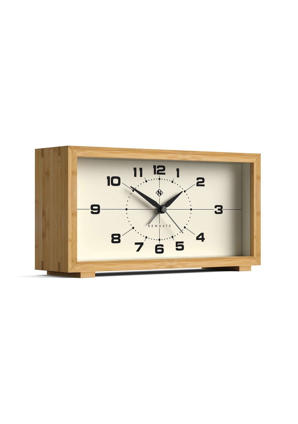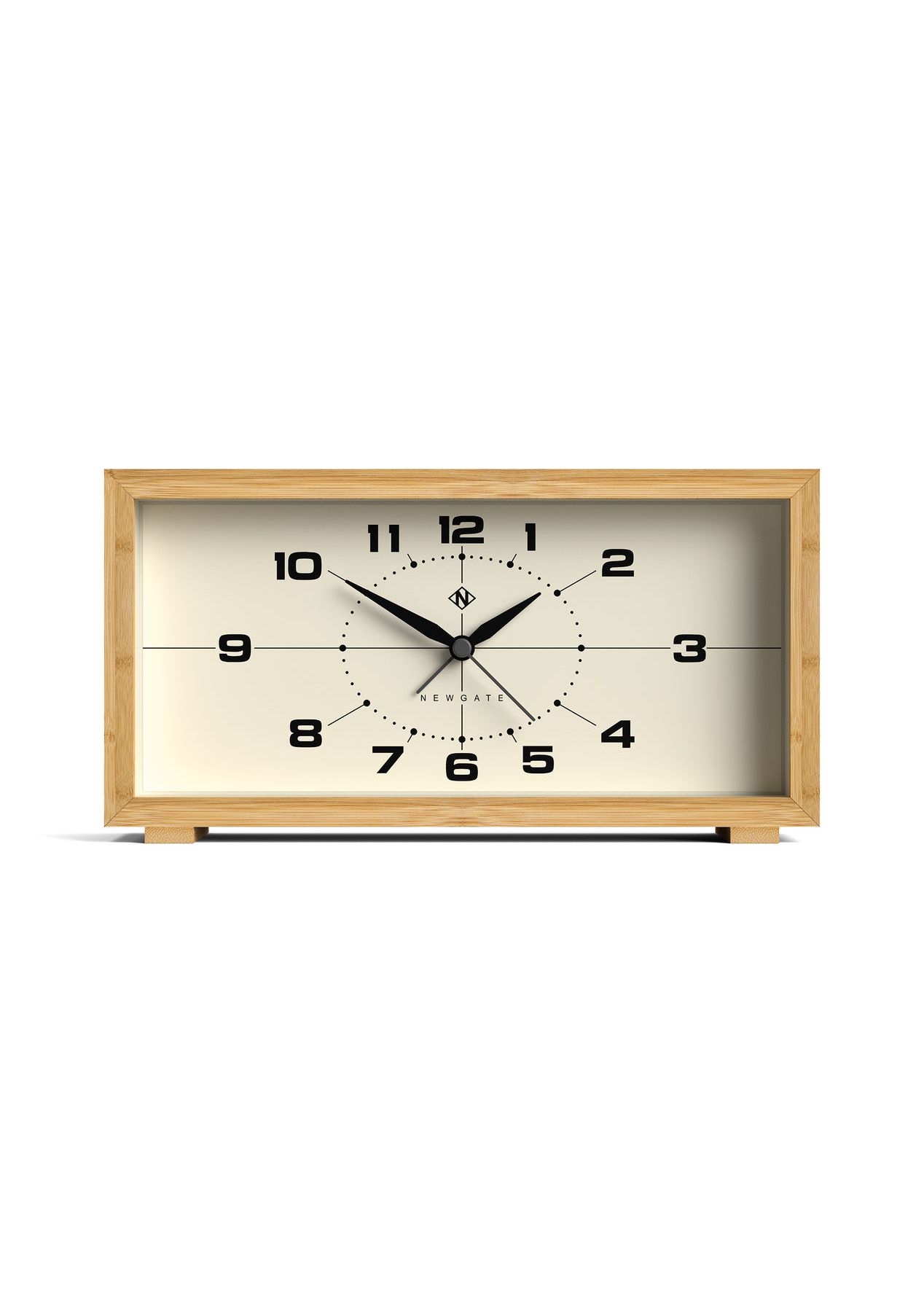 Newgate Lemur Alarm Clock A mid-century modern alarm clock with an emphasis on the modern. This space-age design blends a contemporary cream face and bamboo case with a retro-inspired Arabic dial.Bamboo is highly renewable. Raw bamboo is converted, using the most fascinating process, into the solid blocks that we then turn into clock cases. Can you believe some species of bamboo grow up to an inch per hour! Known as ‚silent sweep‚ in the industry, the hands move in a constant sweeping motion rather than a stepped tick. So you won‚t hear any ticking but if your hearing is particularly sensitive in a completely silent room you may hear a very quiet whirring. - Material: Bamboo, Metal, Glass- Colour: Bamboo- Movement: Quartz 'Silent Sweep'- Power: 1 x AA (Not Included)- Dimensions: LWH 6 x 22 x 11.5cm- Weight: 0.42kg
