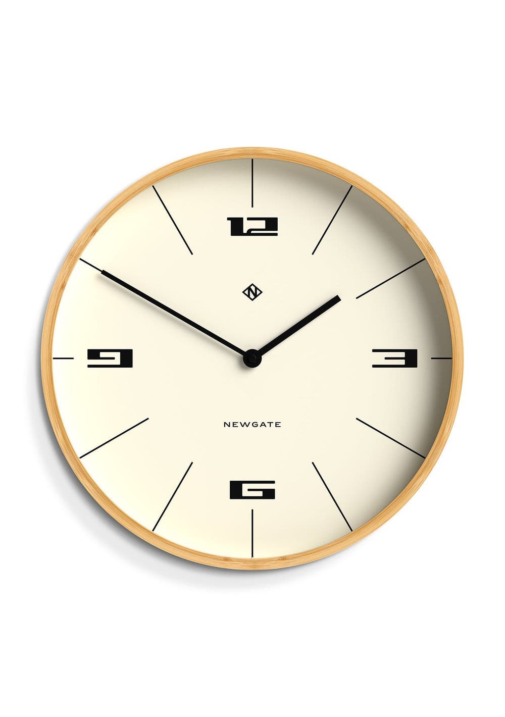 Newgate Mauritius Wall Clock - Hovercraft Dial A modern wall clock with a bamboo case and a minimalist Scandi-inspired design combining functionality with beauty. This case comes with three dial options.This medium wood wall clock creates a modern focal point in the kitchen, living room or office. Bamboo clock with metal hands and a glass lens. - Material: Bamboo, Metal, Glass- Colour: Bamboo- Movement: Quartz 'Silent Sweep'- Power: 1 x AA (not included)- Dimensions: LWH 38 x 38 x 5cm- Weight: 0.96kg