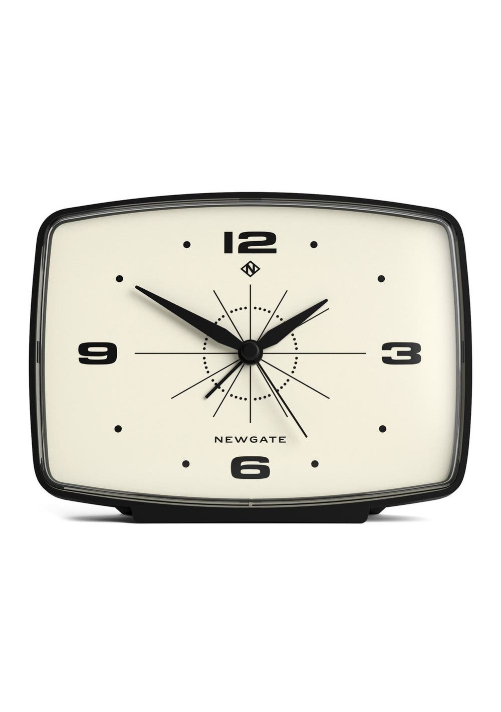 Newgate Brooklyn Alarm Clock Black. A small retro-inspired alarm clock with a rectangular black case sat on a small acrylic stand, making this unique Newgate designed alarm clock a great addition to your desk, shelf or bedside.Known as ‚silent sweep‚ in the industry, the hands move in a constant sweeping motion rather than a stepped tick. So you won‚t hear any ticking but if your hearing is particularly sensitive in a completely silent room you may hear a very quiet whirring. - Material: Acrylic, Metal- Colour: - Matte Black w/ Cream- Movement: Quartz 'Silent Sweep'- Power: 1 x AA (Not Included)- Dimensions: LWH 10.6 x 14 x 5.4cm- Weight: 0.16kg