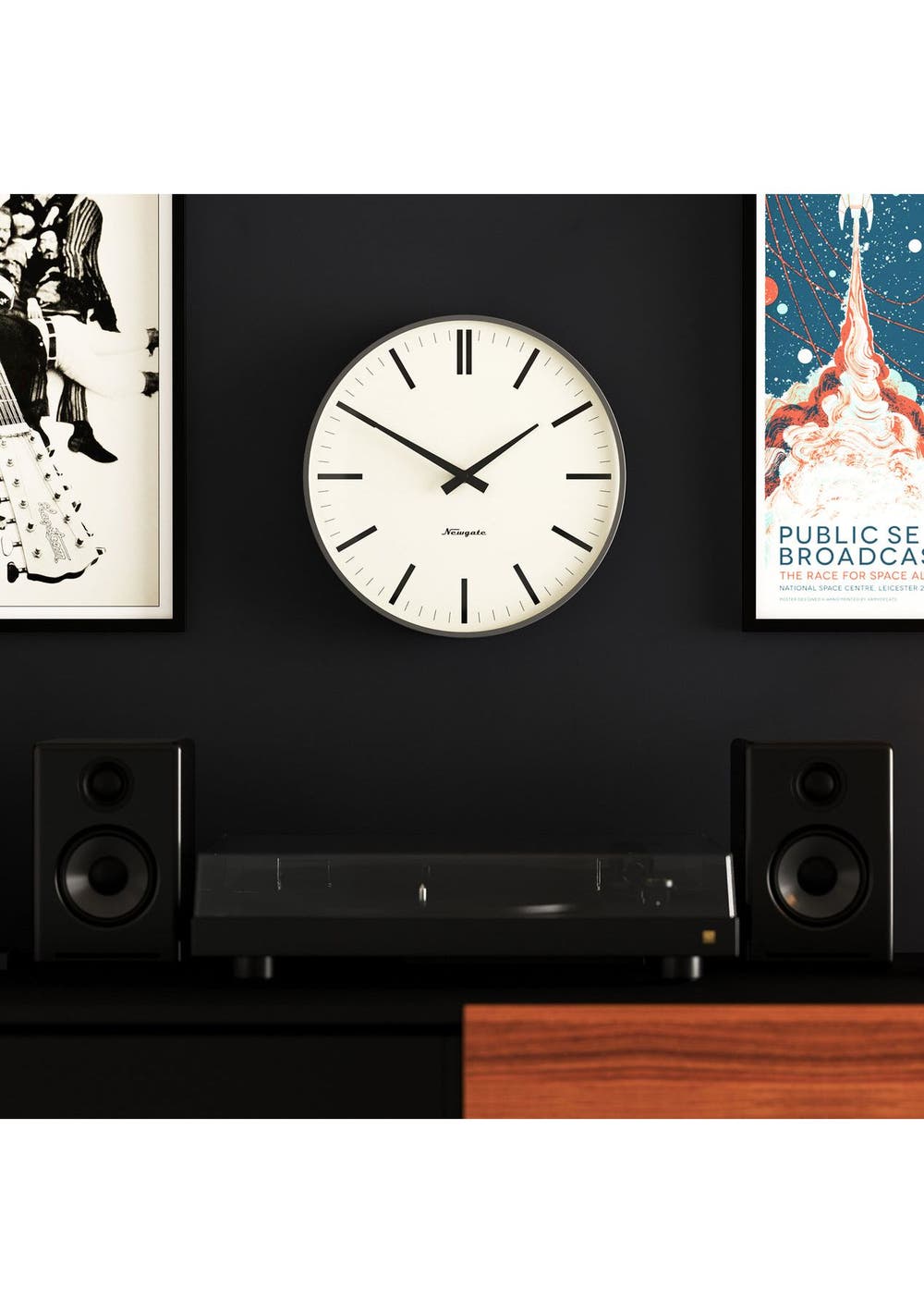 Newgate Radio City Wall Clock Bold Black Marker Dial - Matte Blizzard Grey