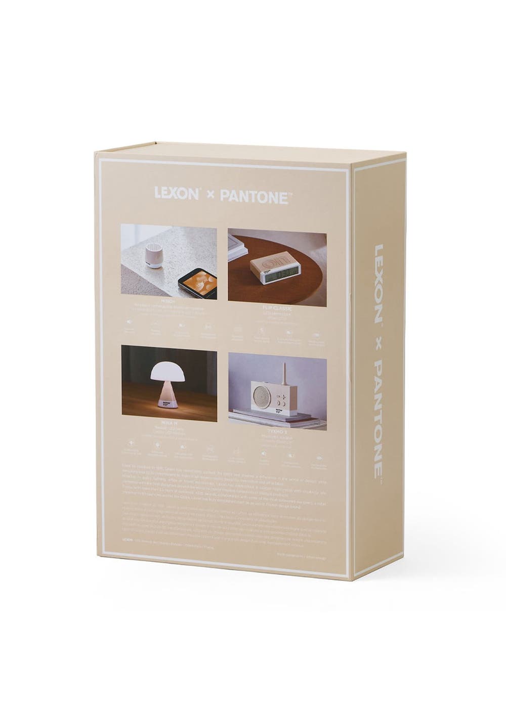 Lexon GIFT Set PANTONE - Includes Mino+ Mini Speaker, Flip Classic Clock, Mina M Lamp, Thykho 3 Speaker - Sand. The collaboration between Lexon and Pantone brings together cutting-edge design and expert colour trends, creating a seamless blend of innovative technology and visual appeal. Colour has always been at the heart of Lexon‚s identity, setting its tech products apart. Through this partnership, Lexon strengthens its commitment to bold, on-trend hues by drawing on Pantone‚s world-renowned expertise in colour. Both brands share a common vision: making great design and vibrant colour accessible to everyone. The result? Sleek, functional products that don‚t just perform brilliantly but also elevate everyday life with striking aesthetics. Pantone LLC, 2024. All rights reserved. This is an authorised Pantone-licensed product manufactured by Lexon. DETAILS The Lexon x Pantone gift set includes: Mino+ Compact Bluetooth speaker TWS pairing capability Built-in microphone for hands-free calls Selfie remote function Bluetooth 4.2 Wireless range: 10m Battery life: up to 3 hours Charging time: 1 hour Rechargeable via USB-C (cable included) or wirelessly Material: ABS Dimensions: √ò 3.7 x 3.7 cm Weight: 73g Flip Classic Reversible alarm clock ON/OFF face rotation LCD display Adjustable brightness (3 levels) Touch sensor snooze function Rechargeable via USB-C (cable included) Battery life: up to 6 months Charging time: 4 hours Power supply: 5V USB adapter (not included) Material: ABS Dimensions: 10.4 x 6.5 x 3 cm Weight: 125g Mina M Portable LED lamp 9 colour LED options Push activation Adjustable brightness IPX4 water resistance Rechargeable via USB-C (cable included) Battery life: up to 24 hours (tested at 75% brightness, 22¬∞C indoor temperature) Material: ABS Dimensions: 9.2 x 9.2 x 11 cm Weight: 142g Tykho 3 Bluetooth speaker Splash-proof design Wireless range: 10m Charging time: 4 hours Rechargeable via USB-C (cable included) Material: ABS Dimensions: 14 x 4.5 x 8.1 cm Weight: 388g