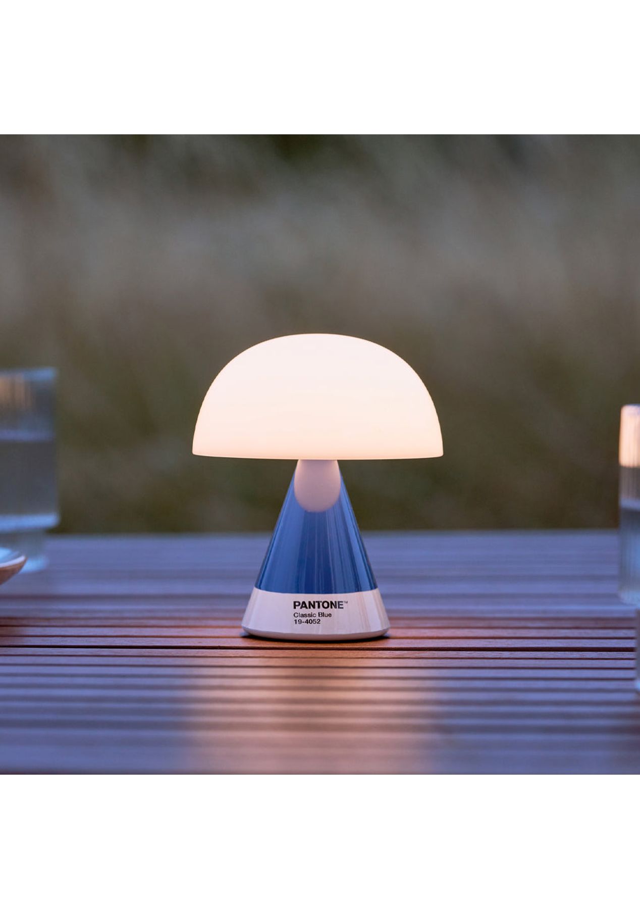 Lexon Mina M Medium Portable Led Lamp PANTONE - Classic Blue - With its compact size, modern design, and water-resistant casing, the Mina M is the perfect way to inspire any space, indoor and out. Mina M brings an impressive 9 LED light color range to your bedside, workspace, or patio. The color change and dimming function are all controlled by a press down feature on the top of the light. Designed with a IPX4 water-resistant casing, means that it‚s okay if your Mina M is left outside in a little rain. Mina M is rechargeable using any Qi-enabled wireless charging station. You can also charge Mina M by using a USB-C charging cable. The Mina M has up to 24h of battery life from a single charge, making it the perfect companion all day and night. - Medium portable LED lamp- 9 LED colors- Push activation light- Dimmer- IPX4 water resistant- Battery life: up to 24h (tested at 75% brightness, 22¬∞C ambient indoor temperature)- Rechargeable via USB-C (cable included) or wirelessly
