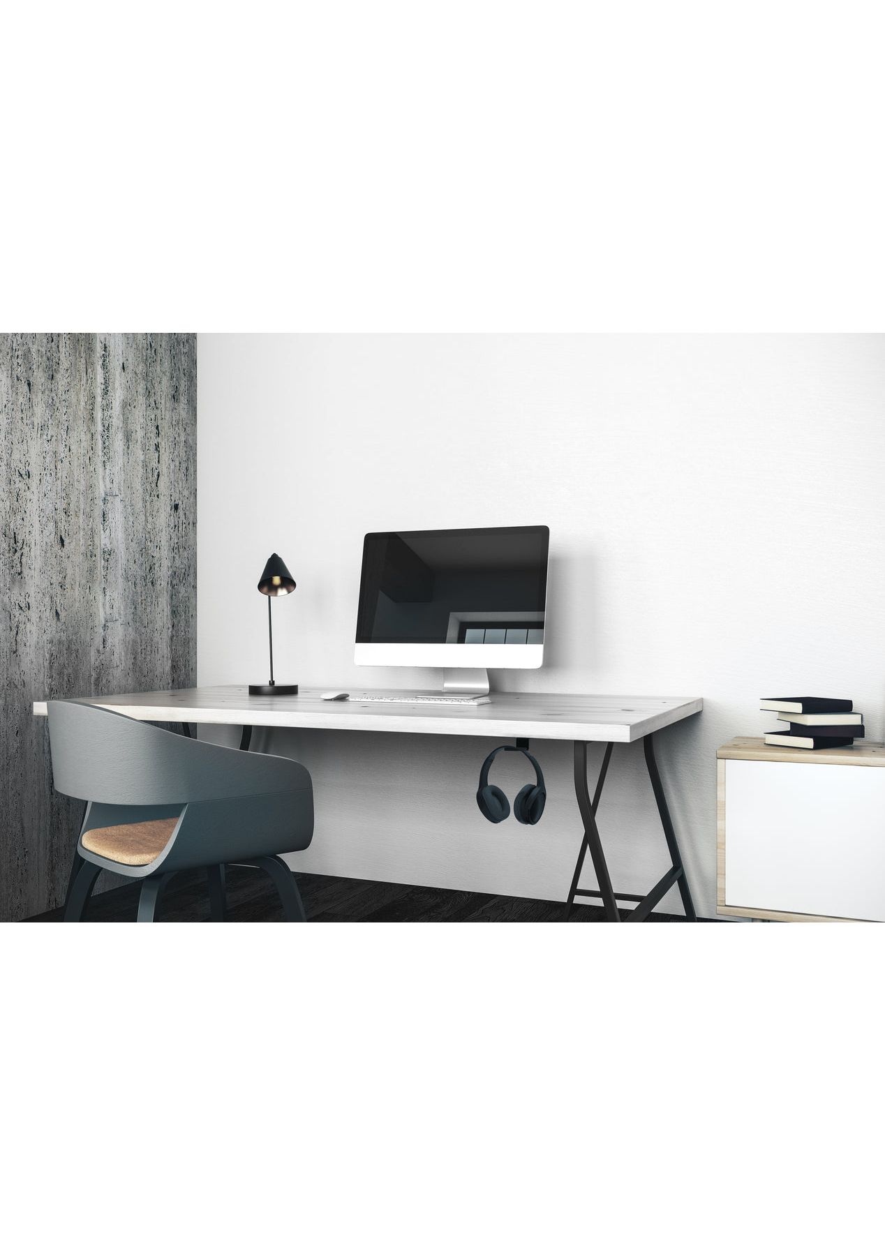 Kanto HH Universal Under Desk Headphone Hook, Black - Enjoy easy access to your headphones while reducing desktop clutter. Constructed out of steel, the HH headphone hook features a contoured silicone cradle designed to protect your headband while keeping it securely in place. High-strength 3M VHB adhesive ensures a quick and reliable installation to the underside of your desk, while optional self-tapping screws are provided for a more permanent setup. Use this low-profile headphone hanger with most on-ear and over-ear headphones weighing up to two pounds. - UNDER-DESK DESIGN - Maintain easy access to your headphones while enjoying a more organised and clutter-free desktop. - SECURE MOUNTING - Ultra-strong 3M VHB adhesive ensures a quick and reliable installation. For a more permanent solution, use the provided self-tapping screws to secure the HH headphone hanger to the underside of your desk. - PROTECTIVE CRADLE - Made from anti-slip silicone, the headphone cradle features contoured edges designed to prevent indentations on your headband. Keep your headphones safe and secure while not in use. - CLEAN AESTHETICS - Along with sleek, industrial cues designed to match the rest of Kanto's premium desktop solutions, this low-profile headphone hook brings you one step closer to achieving that minimalistic style you've been craving. Includes - 1 x Headphone Hook - 1 x 3M Adhesive Pad - 2 x Screws - *Headphones Not Included