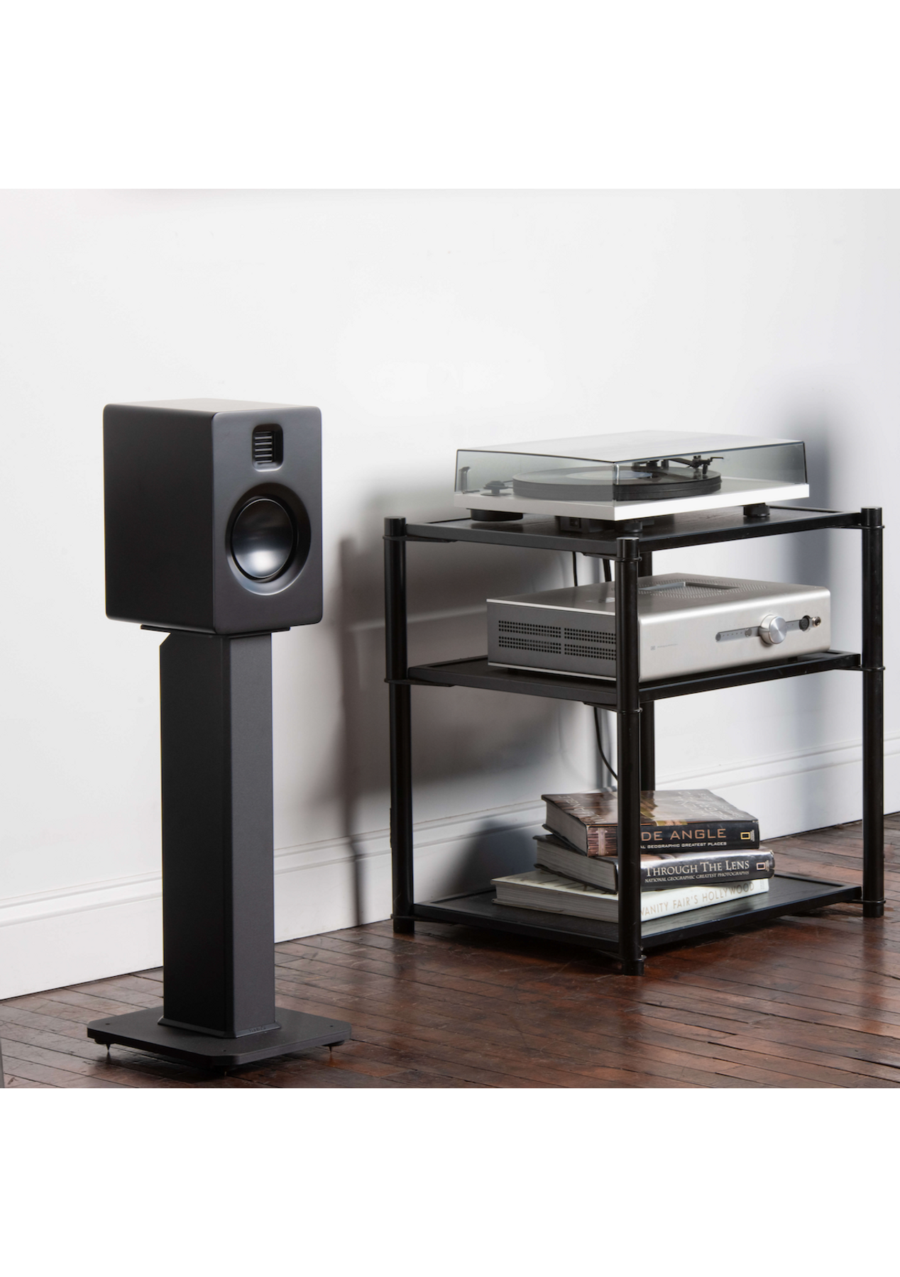 The SX series of premium floor-standing speaker stands with a bespoke isolation system, decouples the speaker stands from the floor for class-leading audio performance. The levelling system accessible from the top of the base plate, combined with the included bullseye level,y adjust the level. The heavy-duty base plates provide the perfect platform with a dedicated channel for cable management and a separate, spacious column to fill provided bags with the substrate of your choice. Hard floor discs with silicone pads protect wooden floors and optional top plate adhesive foam pads improve dampening. Available in 22‚ù or 26‚ù tall models and black or white finishes to match any space or aesthetic. ISOLATING WITH LOW RESONANCE - Bespoke isolation system and hard floor discs with silicone pads help to further isolate the speakers and stands from the floor. A fillable column with included bags for substrate reduces potential resonance. SAFE, SECURE DESIGN - Heavy-duty base plates lower the centre of gravity so stands are more tip-resistant while added mass lowers the natural resonance of the system. NO MESS MANAGEMENT - Run multiple thick cables through the dedicated cable column without running out of room or interfering with fill. VERSATILE COMPATIBILITY - Provides two included top plate sizes for compatibility with a wide range of speaker sizes. Available in 22‚ù or 26‚ù tall models and in black or white finishes to match any space or aesthetic. SIMPLE LEVEL ADJUSTMENTS ‚ Easily adjust the level of your stands from the top of the base insd of awkwardly adjusting from the floor. The included bullseye level allows you to ensure your stands are set to extract the full potential of your audio system. Includes 2 x Speaker Stands, 2 x Small Top Plates, 2 x Large Top Plates, 2 x Foam Pads for Small Top Plates, 2 x Foam Pads for Large Top Plates, 2 x Bags for Filling Material, Hardware, Manuals *Speakers Not Included