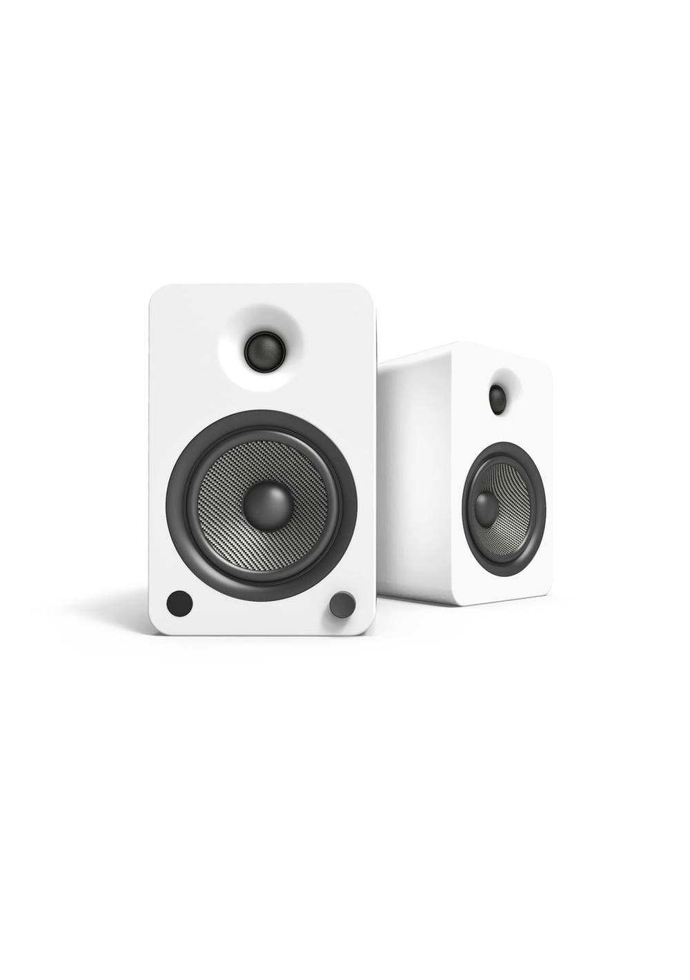 Kanto YU6 200W Powered Bookshelf Speakers with Bluetooth¬Æ and Phono Preamp - Pair, Matte White - Undeniably loud. Satisfy your craving for powerful, full-impact sound with YU6. Armed with a formidable Class D amplifier pumping out 200W peak power, YU6 will have you questioning what it really means to be loud. Its 5.25‚ù Kevlar¬Æ drivers and 1‚ù silk dome tweeters inject detailed sound into every square inch of living space, evoking emotions that can only be expressed with an ear-to-ear grin. A built-in phono preamp makes it easy to spin your favourite tunes, while Bluetooth¬Æ connectivity lets you keep the party going from the palm of your hand. REMARKABLE SOUND ‚ Enclosed in handcrafted MDF cabinets measuring 10.7" tall, YU6‚s 1‚ù silk dome tweeters and 5.25‚ù Kevlar¬Æ drivers deliver crisp highs and wonderfully balanced mid-range, faithfully reproducing all your favourite tunes. EASY STREAMING ‚ Built-in Bluetooth¬Æ with Qualcomm¬Æ aptX‚Ñ¢ technology lets you enjoy high-quality streaming from the palm of your hand. VINYL-READY ‚ Equipped with an integrated phono preamp, YU6 can be easily connected to any vintage or modern-day turntable. SIGNAL DETECTION ‚ YU6 features automatic standby and power-up modes, helping to conserve power when you‚re gone and ensuring you never miss a beat when the music starts playing. REMOTE CONTROL ‚ With volume, input, tone and balance controls, as well as playback options when using Bluetooth¬Æ, the YU6 remote gives you full control over your audio. Includes - 2 x Speakers, - 1 x Power cord- 1 x Infrared remote- 1 x Speaker wire - 1 x 3.5mm AUX cable- 8 x Rubber feet- Manual - Each speaker measures 6.9" W x 8.1" D x 10.7" H (17.5 x 20.5 x 27.2 cm)
