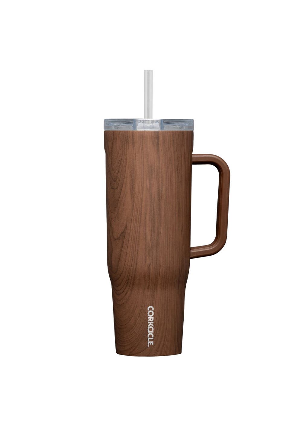 Corkcicle Cruiser - 1.2ltr Walnut Wood. Hit the road, trail, or wherever the day takes you‚îhydrated and in style. The Cruiser is our biggest straw cup yet, holding 1.2L (40oz) of your favorite beverage and keeping it cold for up to 20 hours or hot for up to 9. Whether it‚s your daily commute or a weekend escape, Cruiser is designed for maximum comfort and minimal fuss. It features a spill-proof, dual-function lid for sipping or using the straw, a soft-grip handle for easy carrying, and a non-slip silicone bottom that stays sdy no matter how bumpy the ride. Key Features-Keeps beverages cold for up to 20 hours-Keeps beverages hot for up to 9 hours-Flat sides and ergonomic handle for a secure grip-Spill-proof sip + straw dual-function lid-Soft-touch comfort-grip handle-Stay-put, non-slip silicone bottom-Fits most cupholders-Durable triple-insulated stainless steel