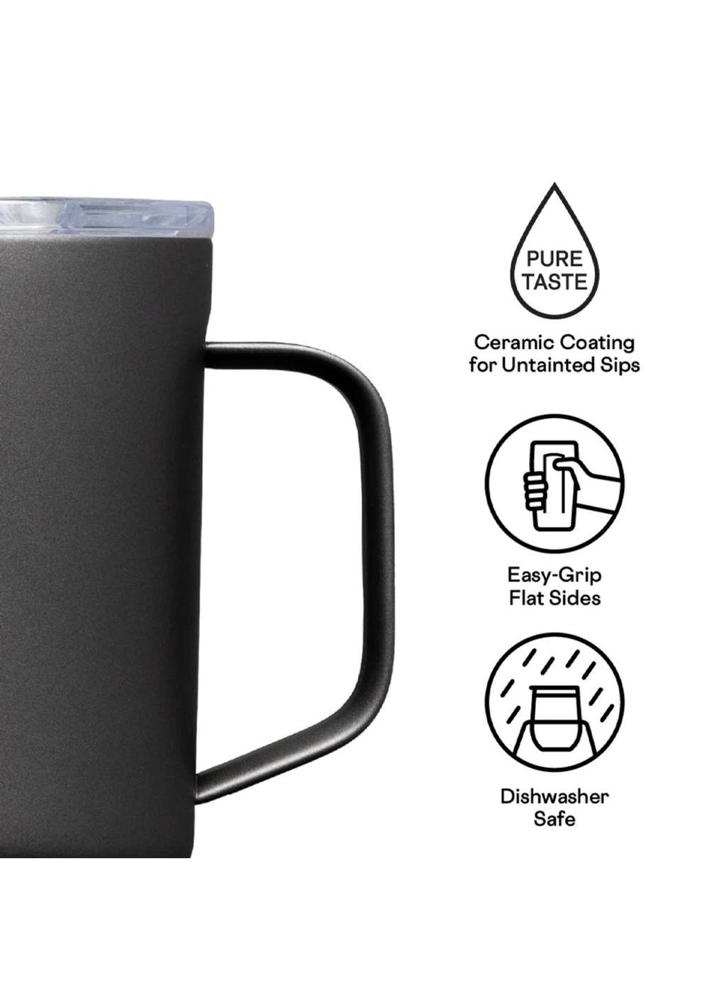 Corkcicle Mug - 500ml Matte Black.Meet the early riser of our Drinkware range ‚ the Mug.Perfect for kickstarting your morning or winding down with a soothing herbal , this mug keeps your drink piping hot for over 3 hours. Whether you're on the go or enjoying a quiet moment at home, it does it all with style and comfort. Key Features: -Keeps drinks hot for 3+ hours -Triple-layer insulation -Sliding, shatter-resistant lid -Non-slip silicone base -Comfortable, easy-grip flat sides -Made from durable stainless steel Specs: -Length: 8.75 cm -Width: 11.76 cm -Height: 12.22 cm -Weight: 345 g