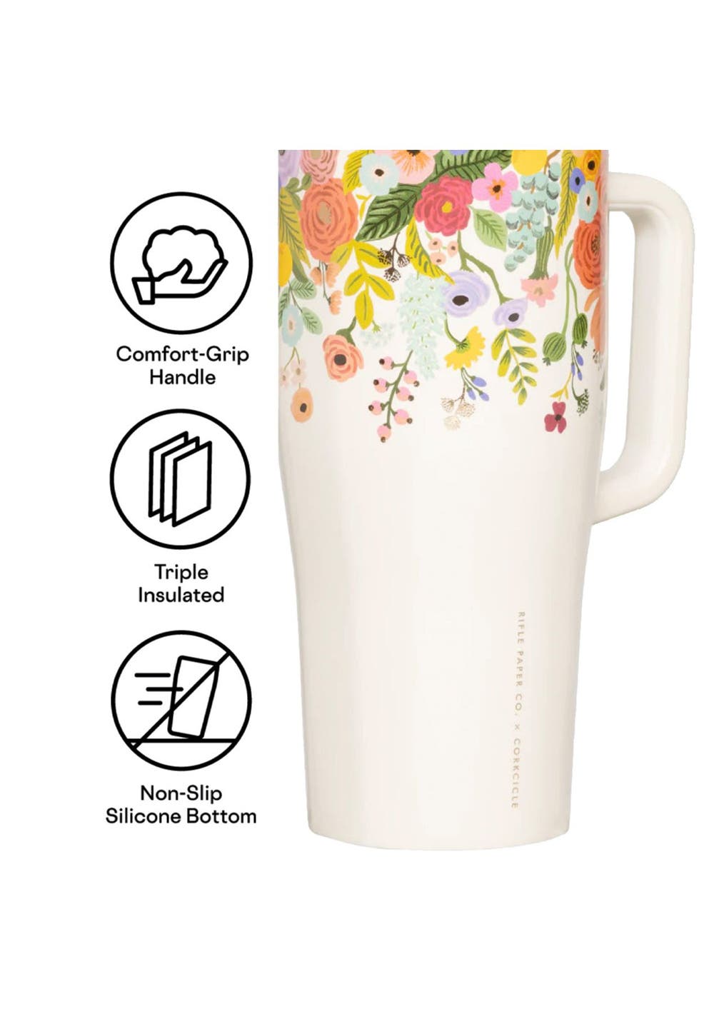 Corkcicle Cruiser - 1.2ltr Rifle Paper - Garden Party Cream - Let the good times flow. Meet Cruiser ‚î our biggest straw cup yet, built to keep your drink icy cold for up to 20 hours. With a generous 1.2L capacity, it‚s perfect for long drives, workdays, beach trips, and everything in between. Designed with a dual-function sip + straw lid that‚s fully spill-proof, a soft-grip handle for easy carrying, and a non-slip silicone base that stays put ‚î no matter how bumpy the ride gets. Now available in Rifle Paper Co.‚s signature floral designs. FEATURES -Keeps drinks cold for up to 20 hours -Keeps drinks hot for up to 9 hours -Easy-grip flat sides + comfort handle -Dual-function sip + straw lid (spill-proof!) -Non-slip silicone bottom -Fits in standard cupholders -Triple-insulated stainless steel