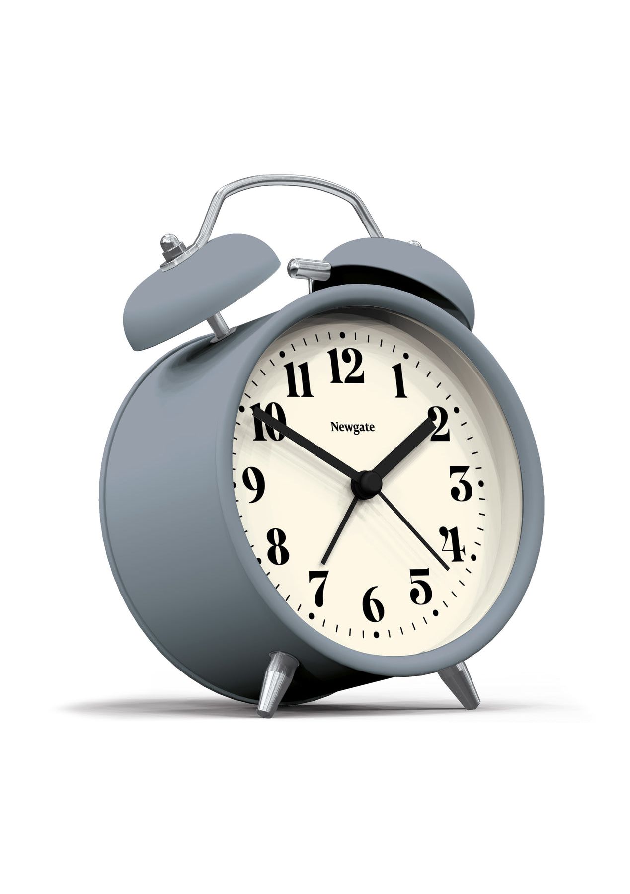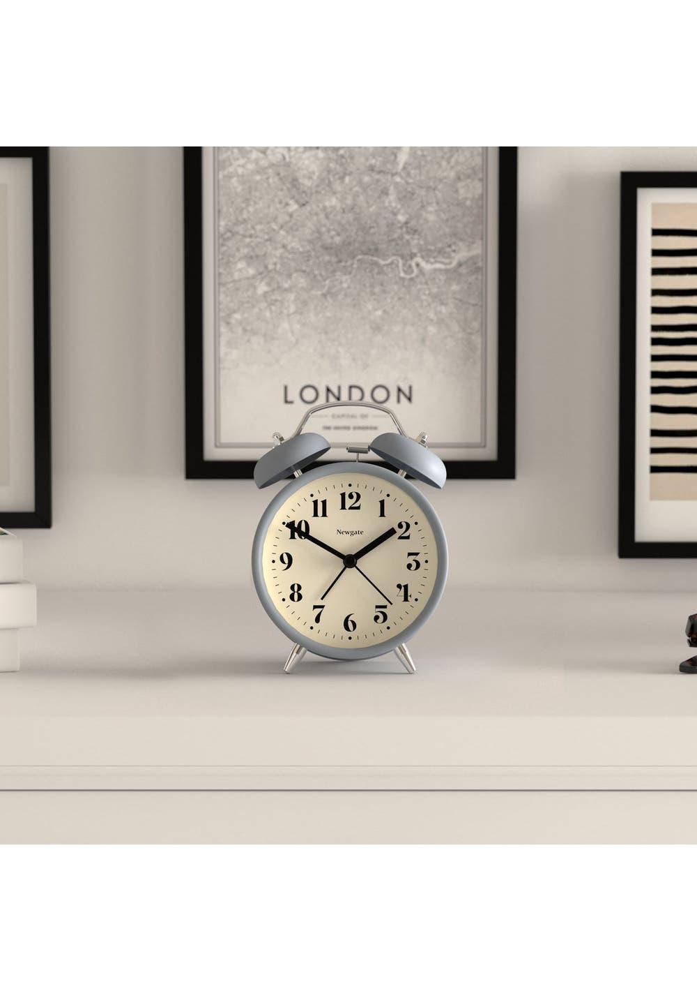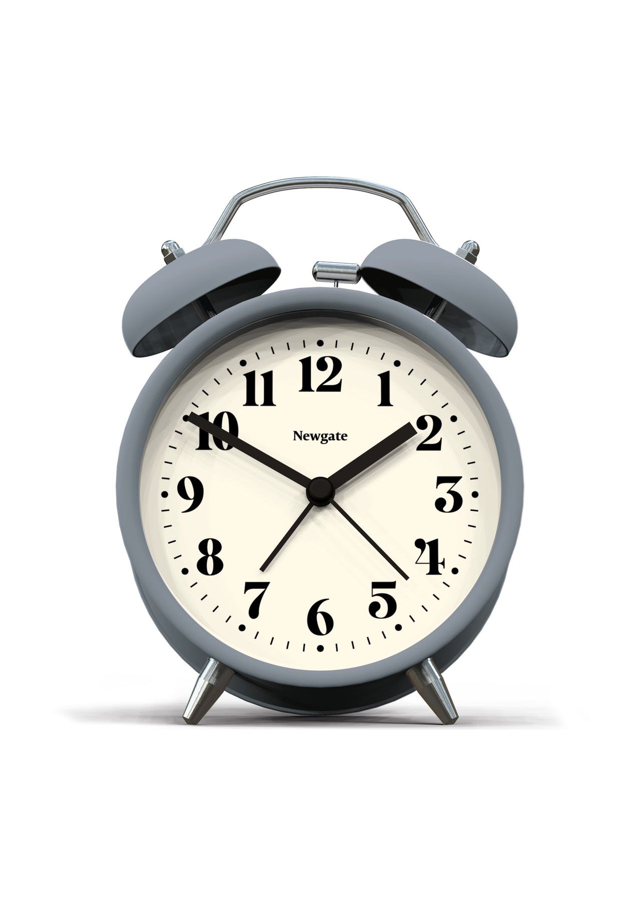 The Theatre Alarm Clock with a Matt 'French' Navy finish, contemporary graphic dial and a moving hammer and twin-bell alarm.Known as ‚silent sweep‚ in the industry, the hands move in a constant sweeping motion rather than a stepped tick. So you won‚t hear any ticking but if your hearing is particularly sensitive in a completely silent room you may hear a very quiet whirring.- Size: HWD 13 x 9.5 x 5.5cm / 5.1 x 3.7 x 2.2in - Materials: Metal and Glass- Colour: Matt 'French' Navy- Movement: Quartz ‚Silent-Sweep‚ Movement (No tick)- Power: Requires 1 x high quality branded alkaline AA battery (not included)