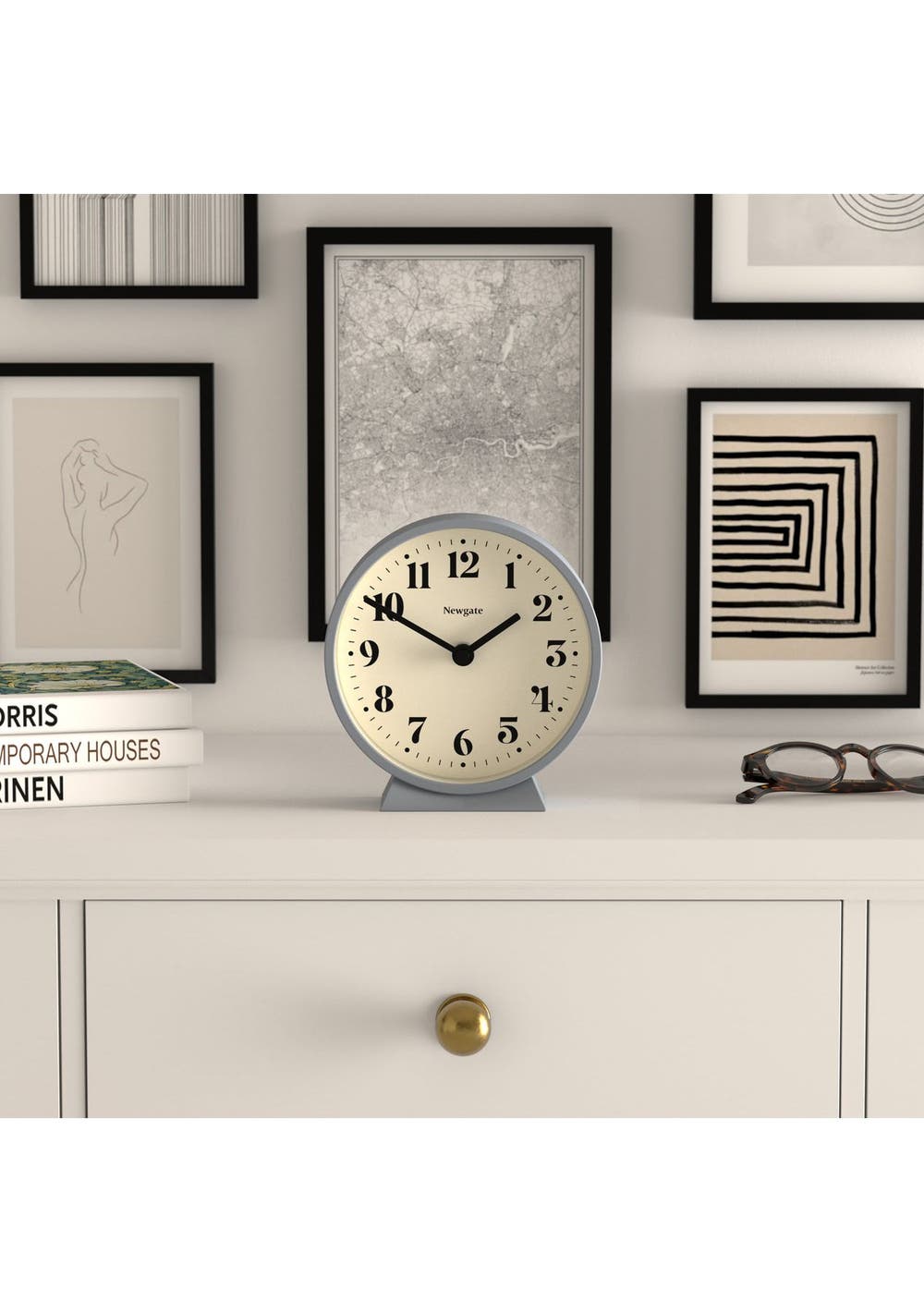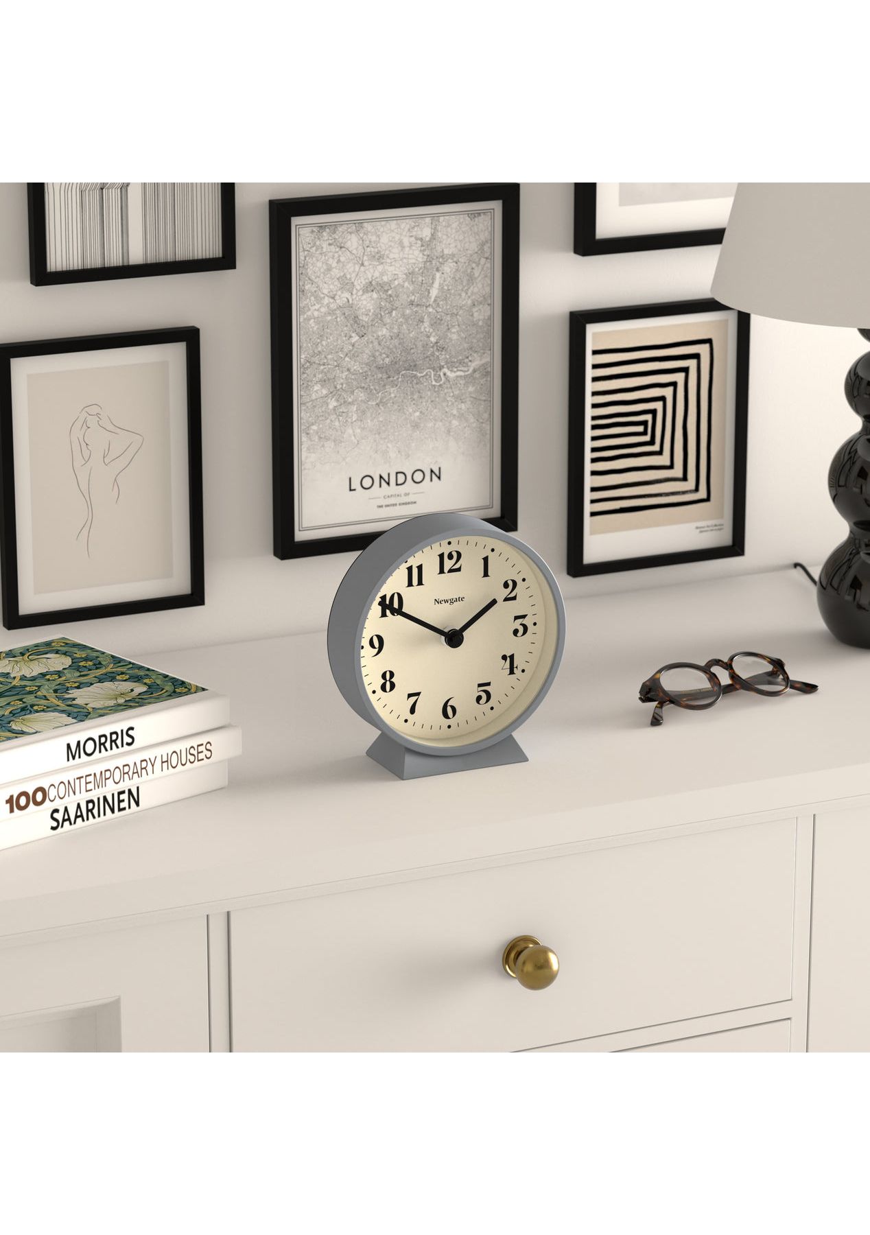 The Theatre Mantel Clock in French Navy is a contemporary mantel or desk clock with a minimalist dialKnown as ‚silent sweep‚ in the industry, the hands move in a constant sweeping motion rather than a stepped tick. So you won‚t hear any ticking but if your hearing is particularly sensitive in a completely silent room you may hear a very quiet whirring.Ideal for adding style and function to the desk, mantelpiece or shelves, the Theatre Mantel coordinates with our French navy alarm clock and French navy wall clock. - Size: HWD 16.9 x 16 x 6.1cm / 6.6 x 6.3 x 2.4in - Materials: Acrylic case with a silicone finish, metal hands and glass lens.- Colour: Matt French Navy- Movement: Quartz ‚Silent-Sweep‚ Movement (No tick)- Power: Requires 1 x high quality branded alkaline AA battery (not included)
