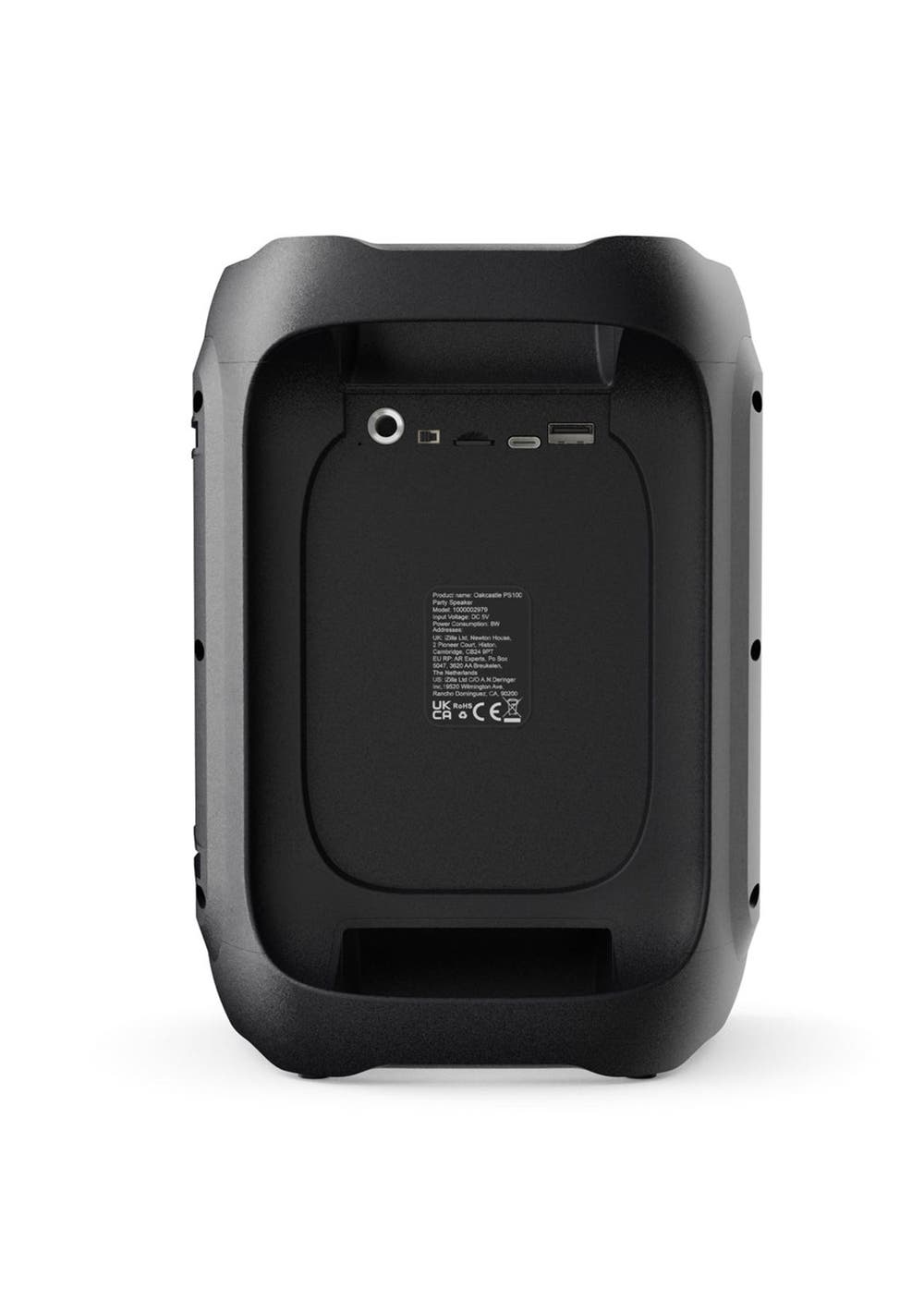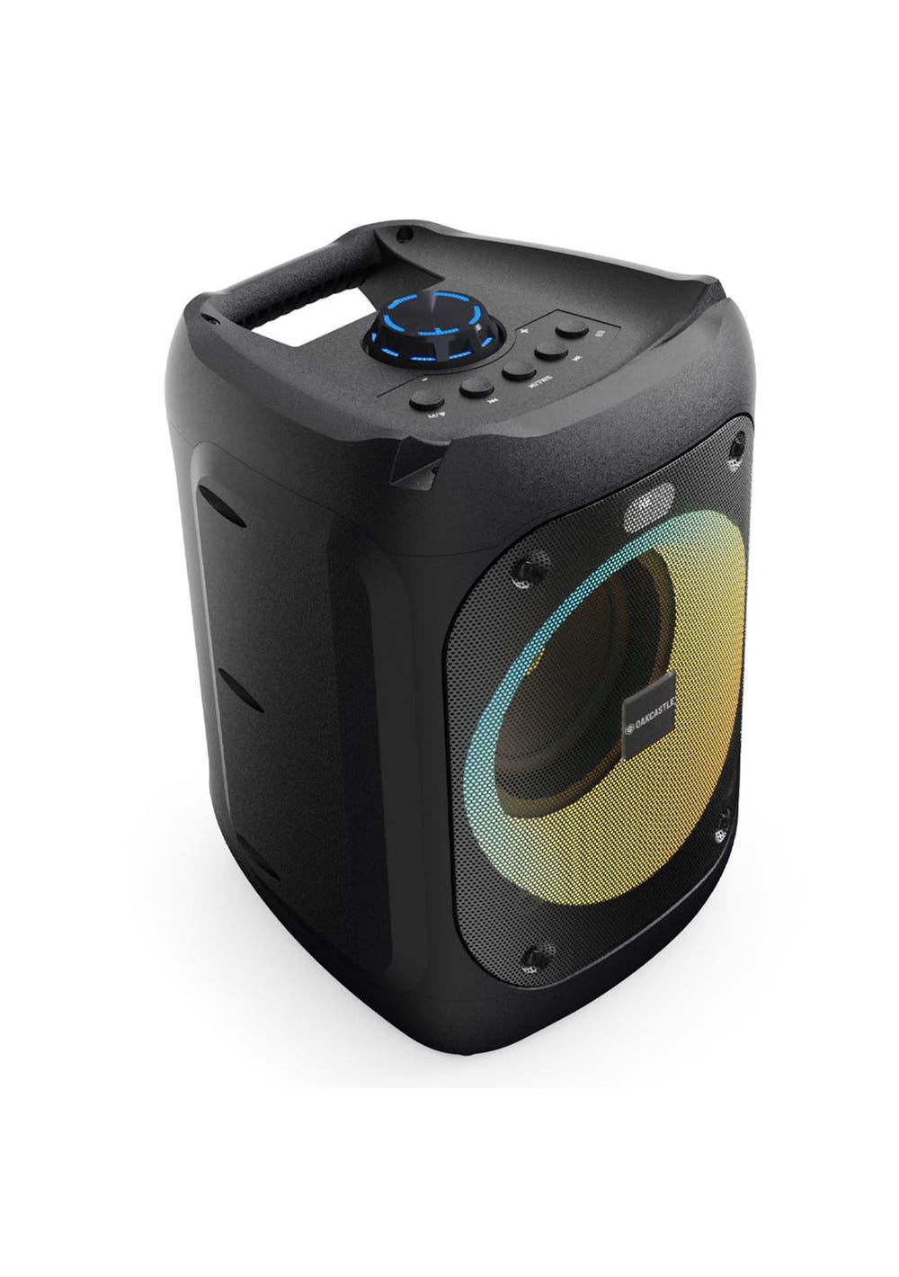 Majority PS100 - Party Speaker 40w Bluetooth Karaoke-DJ-Party-PA System - Black - Experience the ultimate in portability with the Majority PS100 Party Speaker. This powerful device features booming sound, vibrant lights, and True Wireless Stereo, delivering an unforgettable on-the-go music experience. With Bluetooth, FM radio, SD and USB playback options, and EQ controls, this speaker truly has it all. Plus, its rechargeable battery and USB-C charging make it the perfect party companion for up to 10 hours of playback. And with the addition of party lights and karaoke capabilities, the PS100 is sure to bring the energy to any gathering. Don't settle for anything less than the best‚îchoose the PS100 Party Speaker today! Features: -Bluetooth -FM radio -SD and USB playback options -EQ controls -Rechargeable battery and USB-C charging (10 hours of playback)