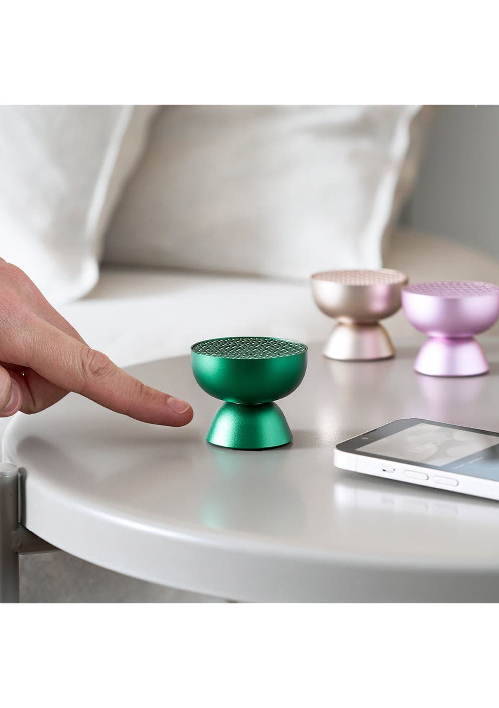 Lexon Tamo Infinitely Pairable Bluetooth Speaker - Green - Tamo stands as the first compact Bluetooth speaker of its kind, revolutionizing the way we experience sound. Its unique ability to be infinitely paired to other Tamo creates a surprising audio network, expanding the horizons of traditional speaker setups. Crafted meticulously and designed for innovation, Tamo redefines what is possible in terms of audio connectivity. With Tamo touch controls located conveniently on the base, managing audio commands and adjusting volume becomes effortless. Whether you're on the move or at home, stream your music from your smartphone or tablet for up to 3 hours.‚ Infinitely pairable mini Bluetooth speaker‚ Pairable via TWS‚ Touch control on base for audio controls and volume adjustment‚ Hands-free mic‚ Selfie control‚ Outdoor friendly design (IPX4)‚ Battery life: Up to 3h‚ Charge time: 1h‚ Rechargeable via USB-C (cable included) or wirelessly‚ Power supply: 5V USB power adapter (not included)