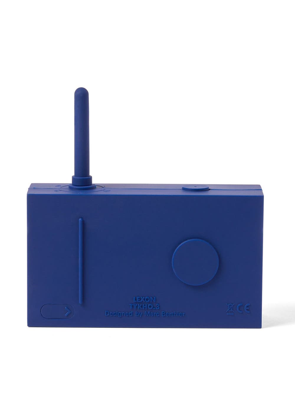 Lexon Thykho 3 Fm Radio & Bluetooth Speaker - Dark Blue - award-winning radio is an iconic design that‚s adapted with the times while staying true to what‚s important. Thykho‚s retro shape is reminiscent of the staple AM/FM radios that stood in our parents kitchens, but with a contemporary twist. We‚ve given the classic bestseller a modern Bluetooth upgrade complete with a 3W speaker. Enjoy the radio by pressing the FM button, and using the antenna to dial into your favourite station. Thanks to its splash-proof rubber finish Thykho 3 is the perfect companion for poolside lounging, listening to music while doing the dishes, or to have in the bathroom with you while getting ready. Enjoy up to 20 hours of continued playtime. Thykho 3 is also easily rechargeable via the provided Micro-USB cable. - FM radio ‚ 3W Bluetooth speaker - Splash-proof - Frequency range: FM 88-108MHz - Bluetooth range: 10m - Battery life: 20 h - Charging time: 4 h - Rechargeable on Micro-USB port (cable included)