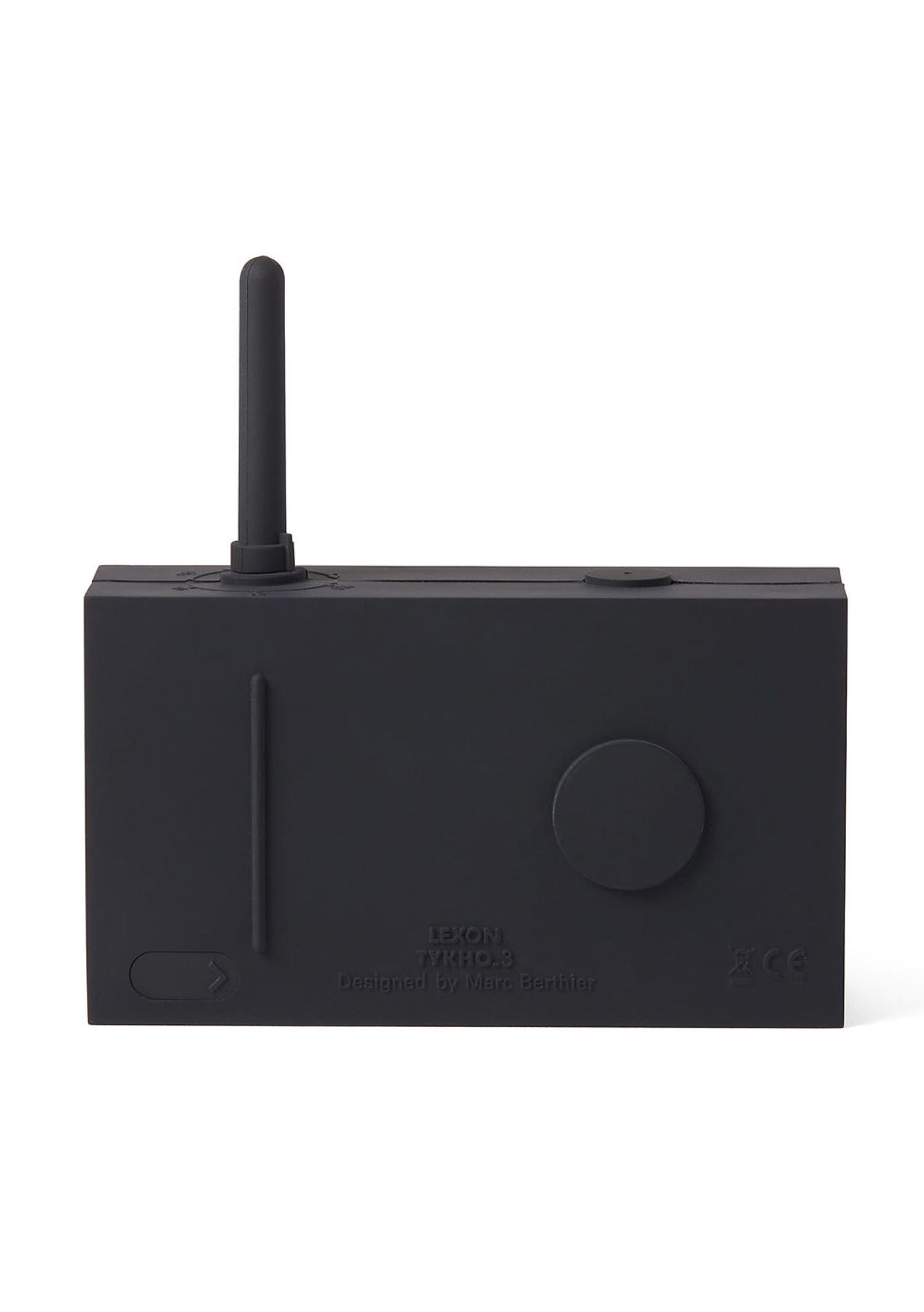 Lexon Thykho 3 Fm Radio & Bluetooth Speaker - Black - Our award-winning radio is an iconic design that‚s adapted with the times while staying true to what‚s important. Thykho‚s retro shape is reminiscent of the staple AM/FM radios that stood in our parents kitchens, but with a contemporary twist. We‚ve given the classic bestseller a modern Bluetooth upgrade complete with a 3W speaker. Enjoy the radio by pressing the FM button, and using the antenna to dial into your favourite station. Thanks to its splash-proof rubber finish Thykho 3 is the perfect companion for poolside lounging, listening to music while doing the dishes, or to have in the bathroom with you while getting ready. Enjoy up to 20 hours of continued playtime. Thykho 3 is also easily rechargeable via the provided Micro-USB cable.- FM radio ‚ 3W Bluetooth speaker- Splash-proof- Frequency range: FM 88-108MHz- Bluetooth range: 10m- Battery life: 20 h- Charging time: 4 h- Rechargeable on Micro-USB port (cable included)