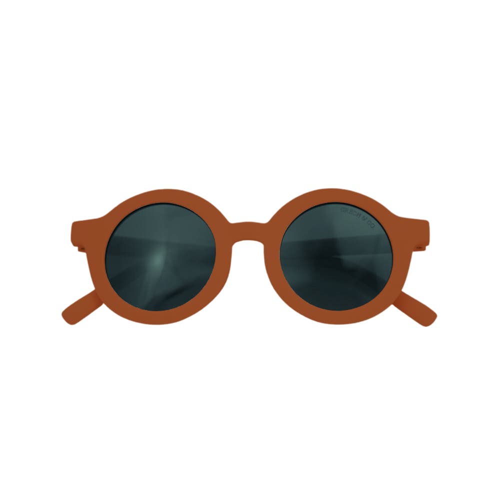 Consciously created for a brighter future. Experience the ultimate eye protection and comfort with GRECH & CO.'s Eco-Friendly sunglasses line. Perfect for adults and kids, our mix-and-match collection ensures a stylish and sustainable experience for the whole family. Crafted using outstanding TPEE material, ensuring energy-efficient production and high recyclability, reducing reliance on virgin resources and diverting waste from landfills. Durable, featuring TAC lenses, UV 400, and Category 3 protection, with a hypoallergenic and bendable frame they are perfect for daily wear and can withstand the adventures of even the most daring kids. Enjoy long-lasting quality without compromising on style or safety. MATERIALS: Lenses: -TAC Polarized Lenses Frame: -TPEE Eco-Friendly CERTIFICATES: CE | REACH |EN71-1 | ISO | DROP BALL | CPSC | FDA SIZES | AGES | DIMENSIONS: Baby - Child | 18 months - 8 Years Approximately 12.5cm (face / frame) x 14cm (leg / side) CLEAN + CARE: TAC lenses are made up of 7 protective layers. Water can cause the layers to lift and will damage the lenses. Avoid exposure to water. Dry lenses thoroughly if exposed to water. Do not store under direct sunlight for extended periods of time. WARNING: We recommend supervision at all times, of children under 3 years of age when wearing our sunglasses