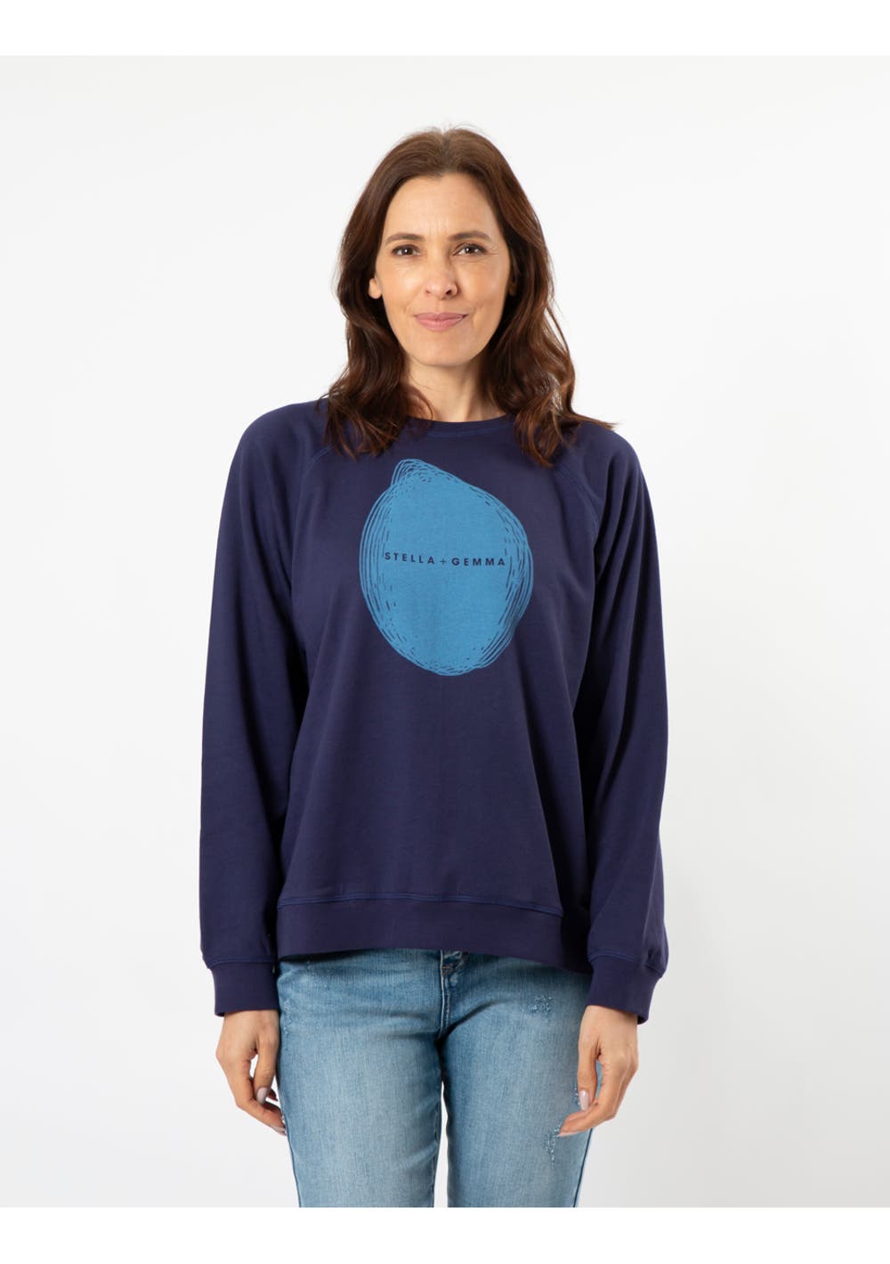 Love Stella + Gemma Sweaters. The girlfriend sweater is a relaxed shape borrowed from the boys, but designed to fit you perfectly. Round neck with cuffs to sleeves. Fabric: cotton.