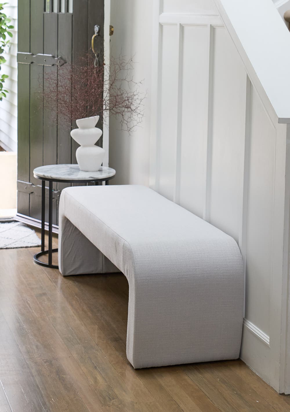 Designed Exclusively for Onceit, our George Collective brand is a contemporary and premium range for the home. Sitting just got a whole lot more interesting. Meet the George Collective Curved Bench, your new favourite spot to lounge, relax, and (let’s be honest) strike a pose. With its elegant, swooping design, this bench isn’t just for sitting—it’s for flourishing. It’s the furniture equivalent of a red carpet entrance, with a shape so smooth, you’ll wonder why all benches aren’t this stylish. Whether you’re using it to pull on your shoes, daydream with a book, or simply add a touch of flair to your space, this bench does it all with a wink and a nod. Upholstered from high-quality fabric and designed to fit effortlessly into any space, this bench is as practical as it is stylish. Plus, it’s versatile—whether you're hosting a party or just binge-watching your favorite show, it’ll look fab wherever it sits. Product Dimensions: Length: 150cm Height: 48cm Seat Depth: 45cm Packaged Dimensions: 151cm x 46cm x 50cm Packaged Weight: 22.2kg Cover: 100% Polyester Boucle Filing: Foam Frame: MDF