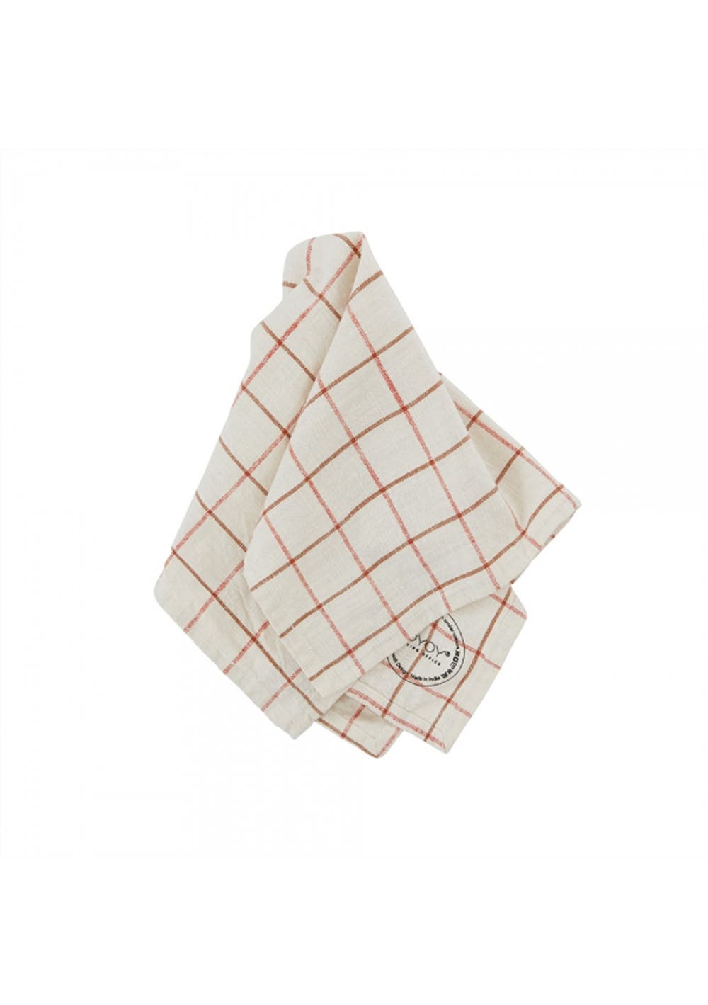 Oyoy - Grid Slub Napkin - Pack Of 2 - Offwhite / Red