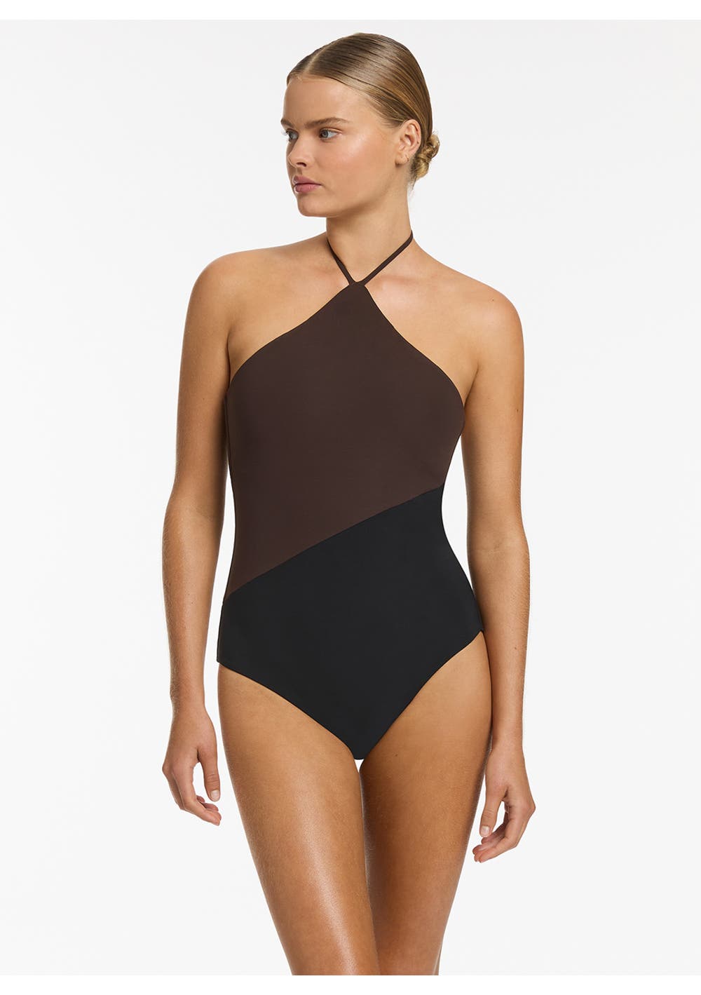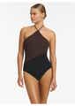 Jets - Versa High Neck Halter 1Pce - Black/Chocolate