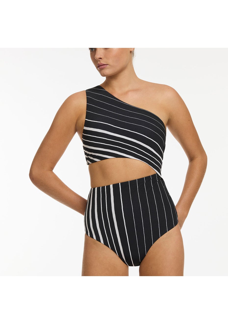 Seafolly - One Shoulder Cut Out 1Pce - Black/Chalk