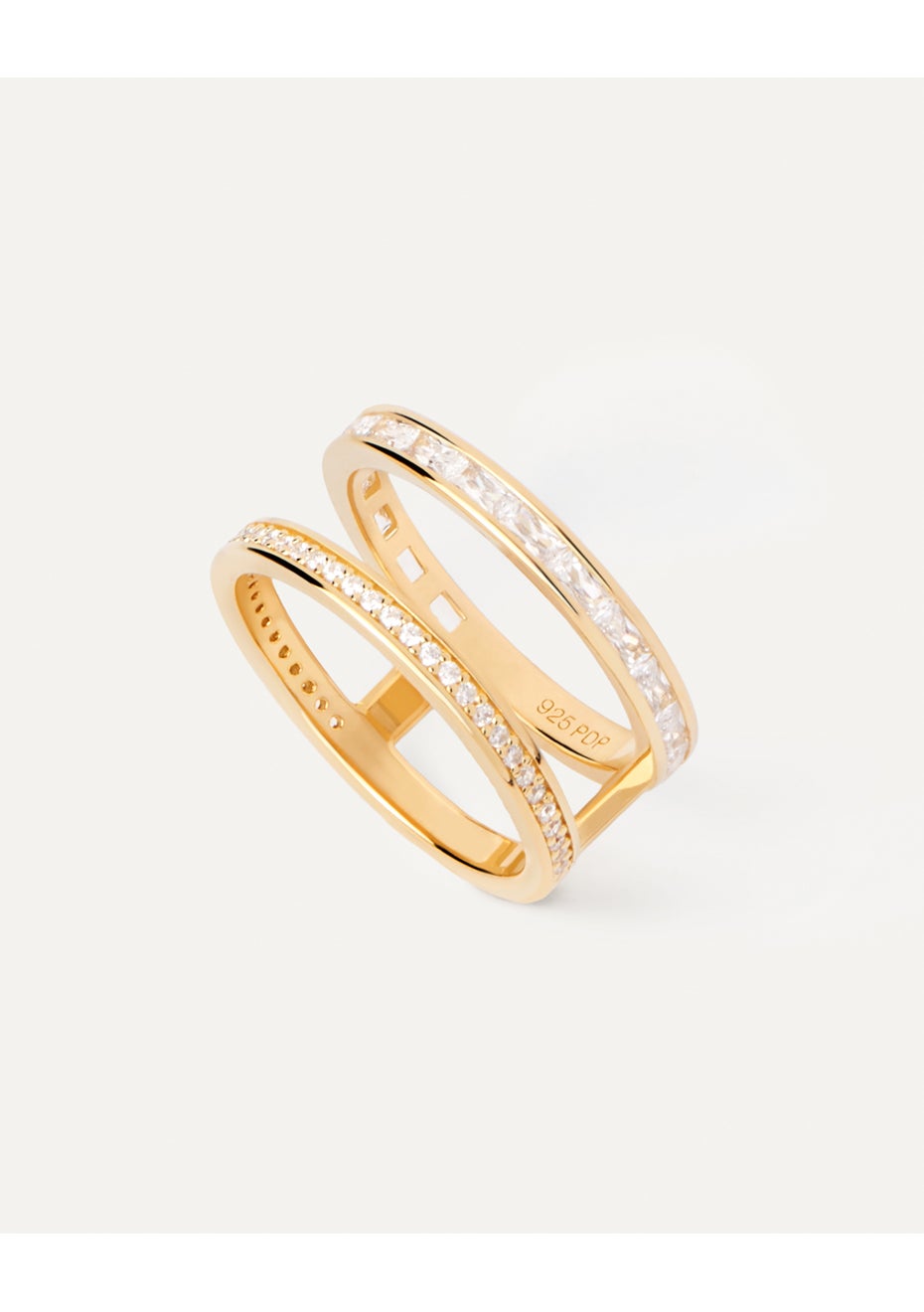 Material: Sterling Silver Finishing: 18K Gold plating STONES: White zirconia STONES MEASUREMENTS: 3 x 1.5 mm / 1 mm RING TOTAL WIDTH: 9 mm WEIGHT: 4.03 g