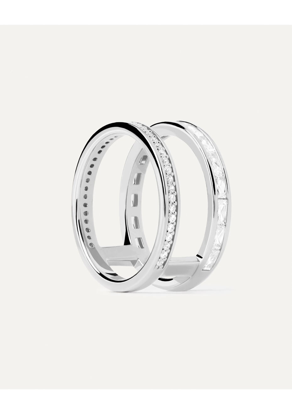 Material: Sterling Silver Finishing: Rhodium silver plating STONES: White zirconia STONES MEASUREMENTS: 3 x 1.5 mm / 1 mm RING TOTAL WIDTH: 9 mm WEIGHT: 4.03 g