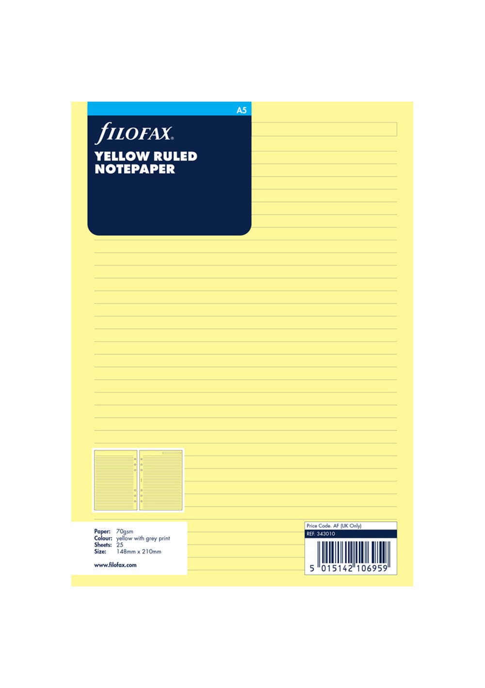 Filofax Organiser Refill A5 Notepaper Ruled Yellow