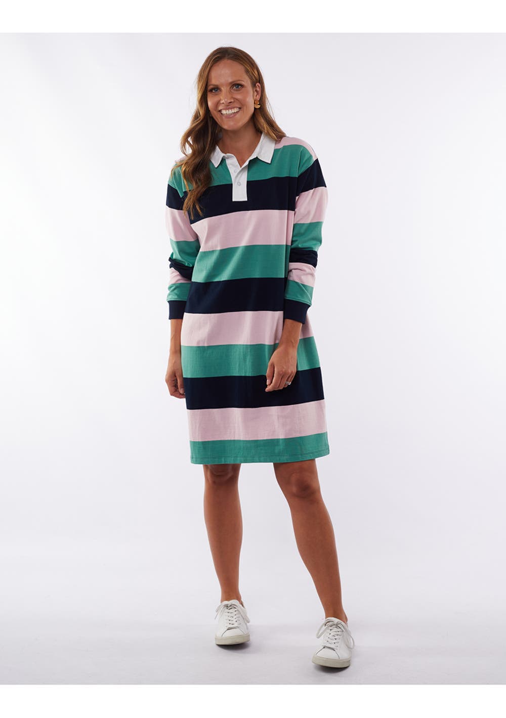 Elm - Imogen Stripe Rugby Dress - Navy / Sage / Pink