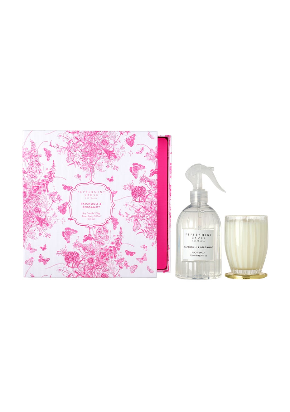 Peppermint Grove - Candle 200g & Room Spray Set - Patchouli & Bergamot (Ltd Edition)