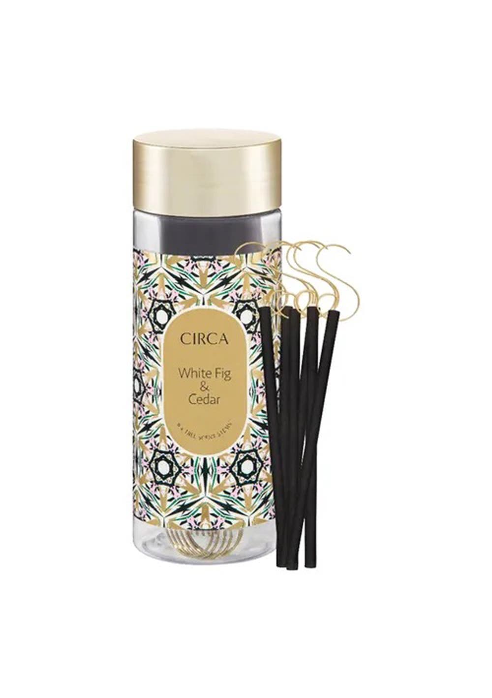 What it is: Make any christmas tree smell like a fresh-cut one with our white fig & cedar mini christmas tree scent stems™. Add scent to your artificial tree or enhance the natural scent of your real tree with this delightful fragrance of white fig & cedar, with subtle accents of sandalwood and cardamom. A touch of white orchid adds a delicate floral note, filling your home with a wonderful aroma. Top: floral, white orchid middle: pine tree, juniper, cardomon base: earthy greens, sandalwood, white cedarwood. Limited edition What it does: Enhance the magic of your christmas tree with Circa white fig & cedar tree scent stems. This set includes six mini Christmas tree scent stems™ and six hooks, each releasing a sophisticated blend of lush white fig and earthy cedar. Designed to infuse your tree and surrounding space with a refined, festive fragrance, these scent stems create an elegant and inviting atmosphere, making your holiday celebrations even more memorable. What it includes: 6x Mini Christmas Tree Scent Stems™ 6x Hooks What else you need to know: Made in Australia How To Place the hook into your Mini Scent Stems™ and then place onto your Christmas Tree. Replace your Scent Stems™ every 30 days to refresh your fragrance or increase their strength. After 30 days the Mini Scent Stems™ can be placed into recycling with other paper products except for the metal hooks.