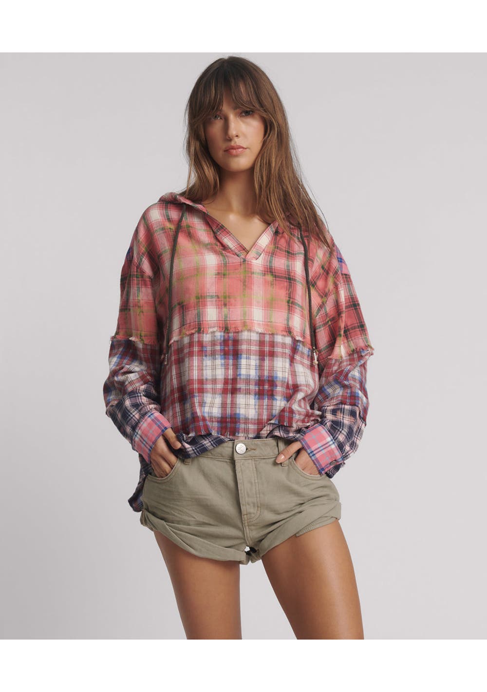 One Teaspoon - Acid Wash Flannel Hooded Shirt - Multi
