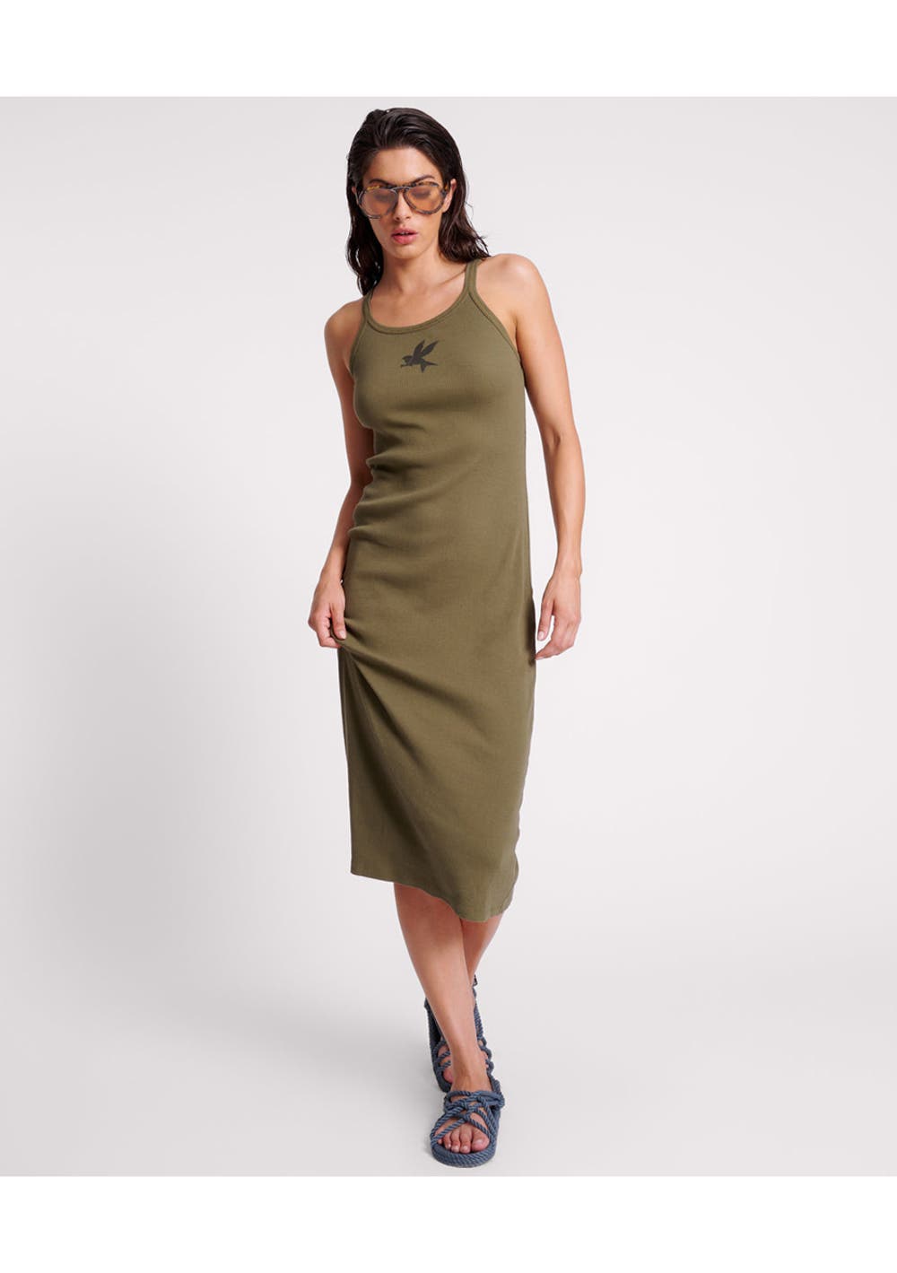 One Teaspoon - Khaki One Teaspoon Rib Singlet Midi Dress - Khaki