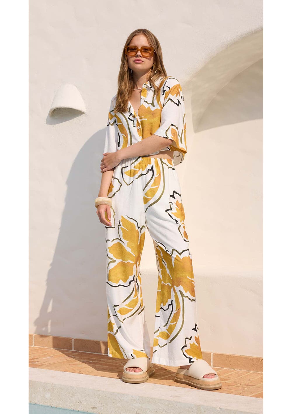 MINKPINK - Zuri Wide Leg Pant - White Palm Print
