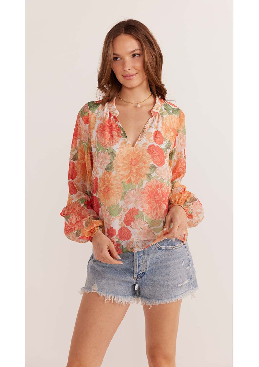 MINKPINK - Aida Long Sleeve Blouse - Apricot Floral