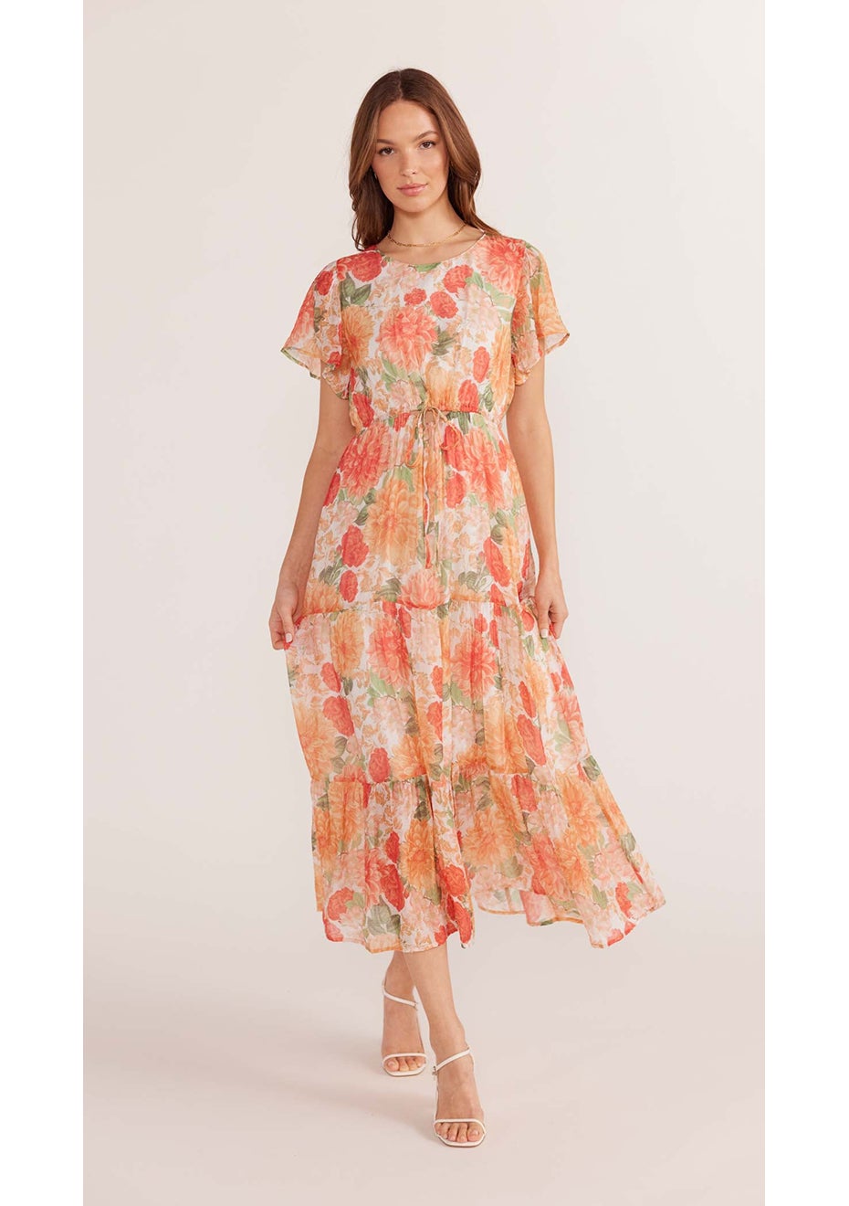 MINKPINK - Aida Flutter Sleeve Midi Dress - Apricot Floral