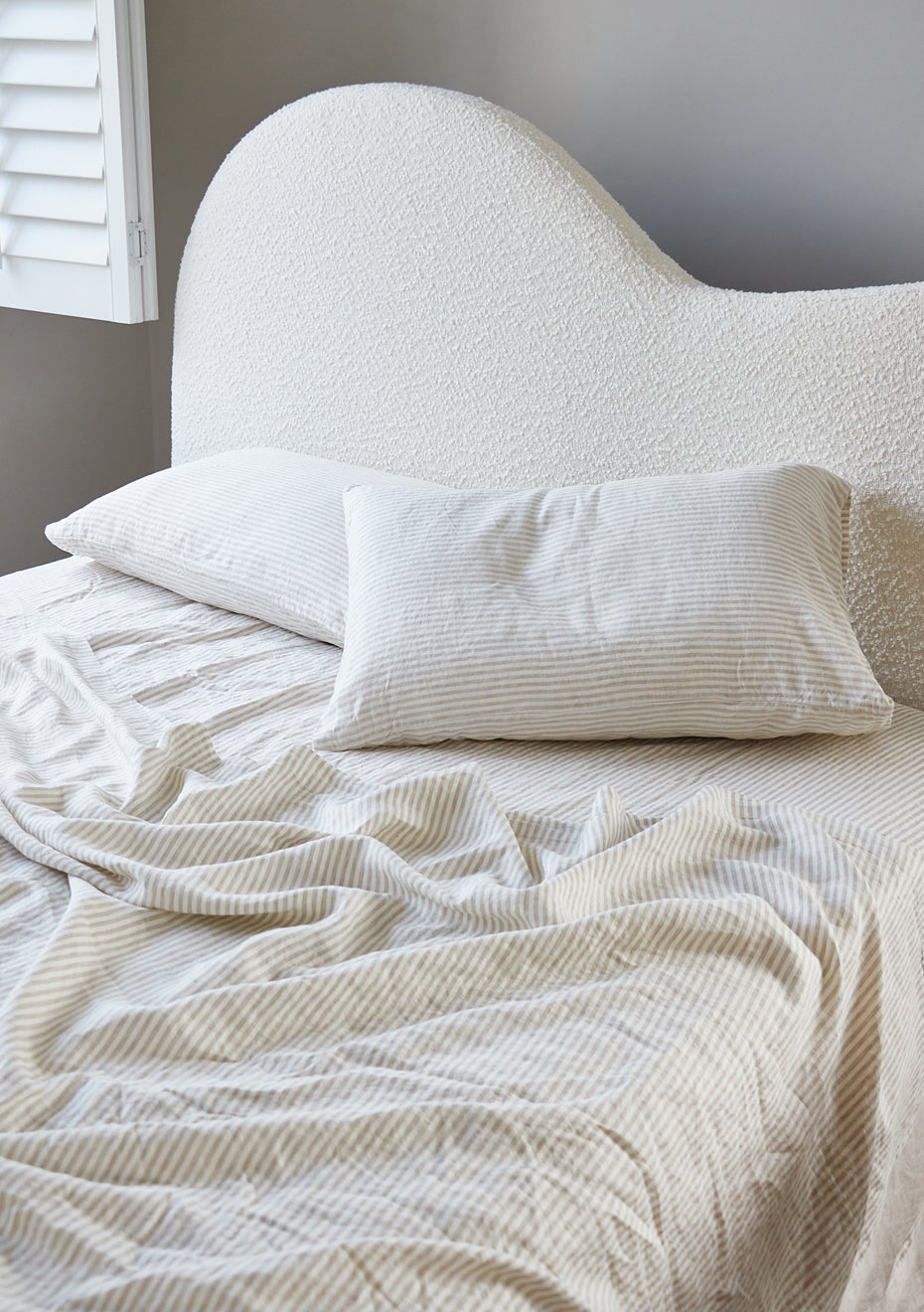 George Collective - 100% European Flax Linen Sheet Set - King - Natural Stripe