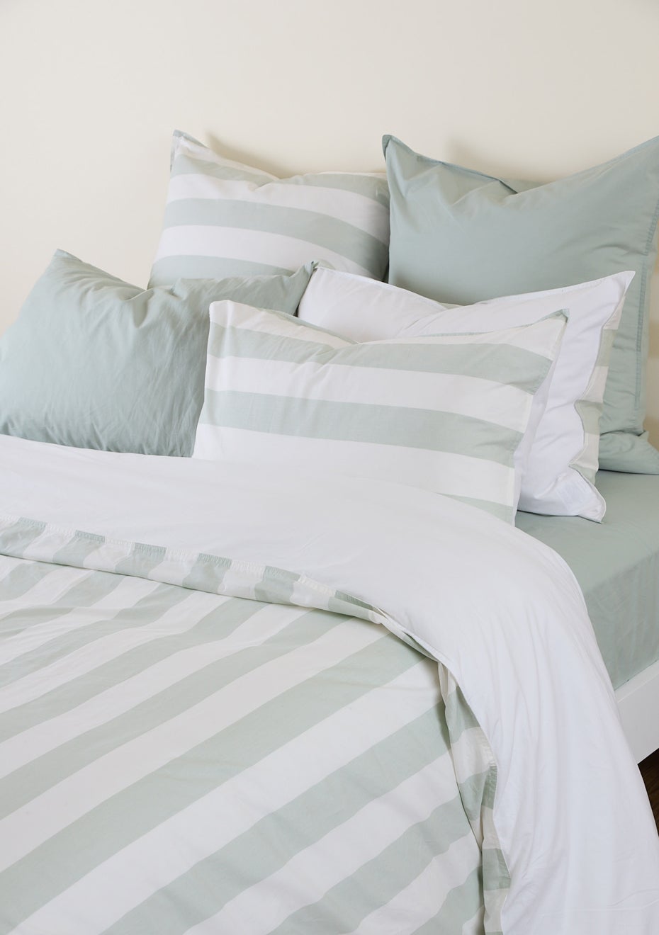 George Collective - Stonewashed Cotton Reversible Duvet Cover Set - Queen - Desert Sage Wide Stripe/White