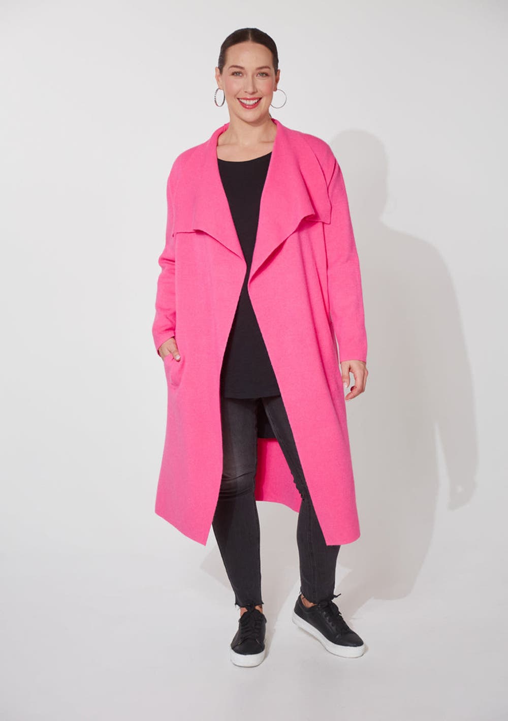 Indulge in timeless comfort with the Cordova Cardigan. Luxuriously soft, this knit cardigan is crafted for ease and elegance, ensuring cosiness throughout the winter. Its simple, longline silhouette boasts wide lapels and a self-fabric belt for structured appeal. Perfect for dressing up or pairing with a t-shirt and denim for a relaxed look, it's sleek design and soft knit make it a versatile wardrobe essential. FEATURES: Wide lapel Open-style Long sleeves Self-fabric belt Welt pockets Knee-length Easy fit 50% Viscose, 30% Elastane, 20% Polyamide