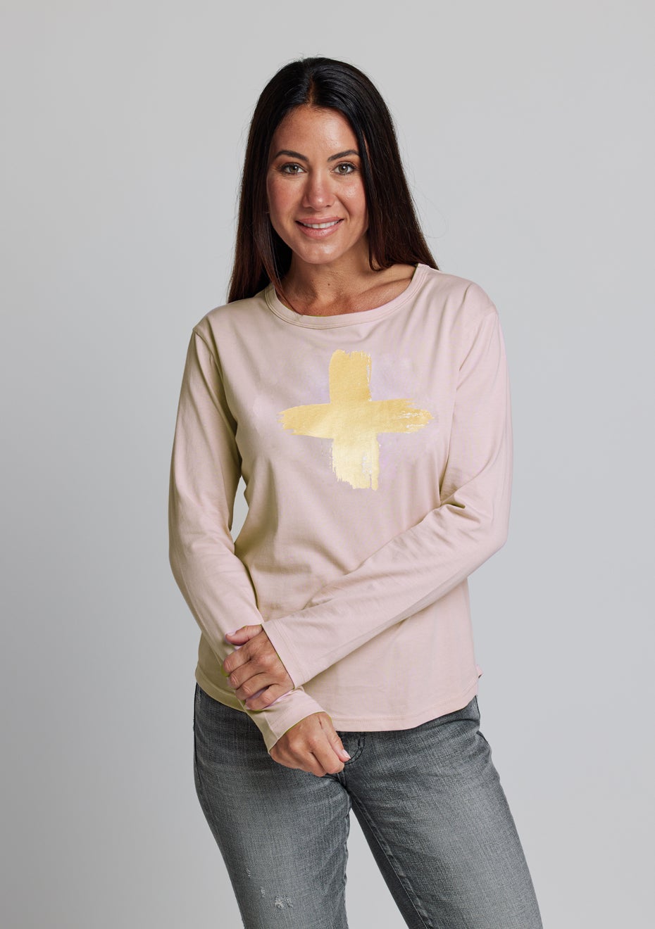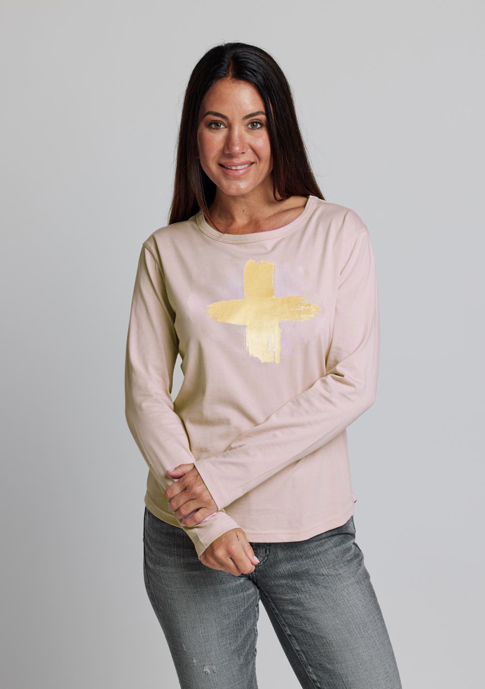 Stella + Gemma - Longsleeve Tee Tea with Gold Foil Cross
