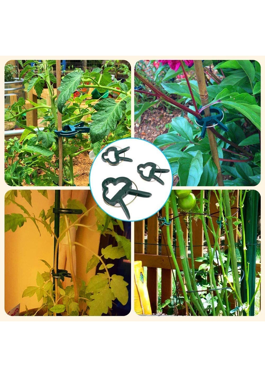 Plant support clips have enough space to accommodate plant stems without causing damage to the plant stems, they are often used to help support tomatoes, vines and vegetables to grow