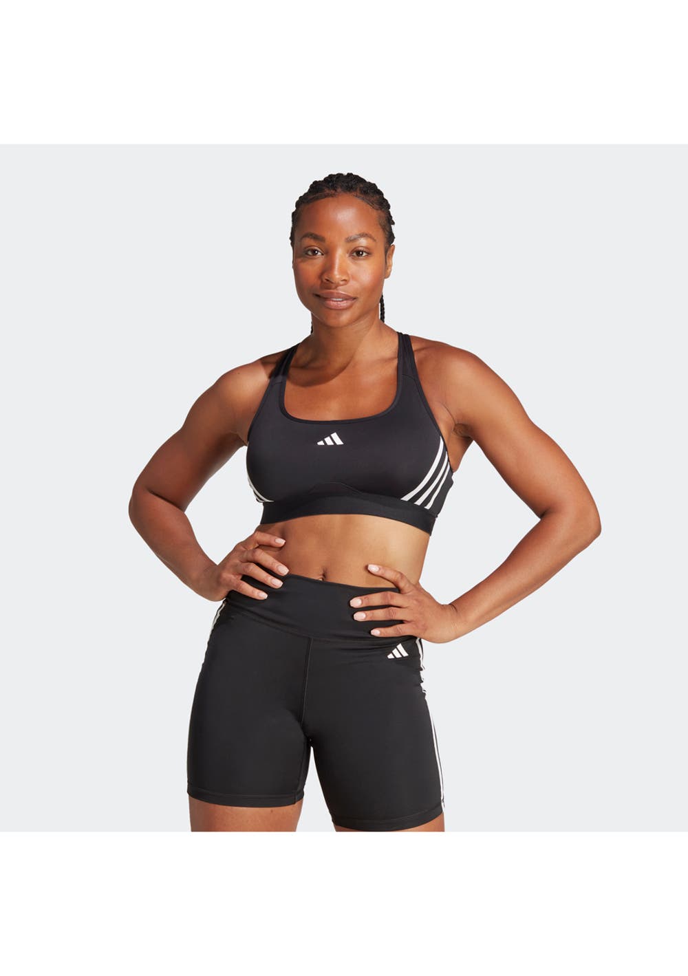 adidas - Womens Powerimpact Train Medium-Support 3-Stripes Bra - Black