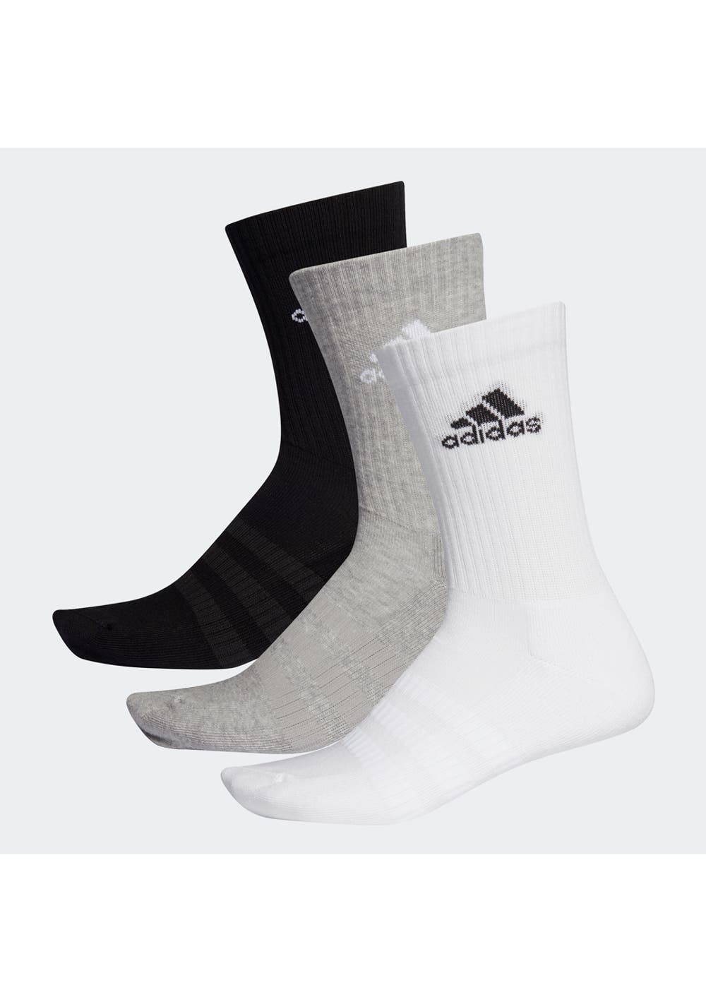 adidas - Unisex Cushioned Crew Socks - Medium Grey Heather / Medium Grey Heather / Black / White