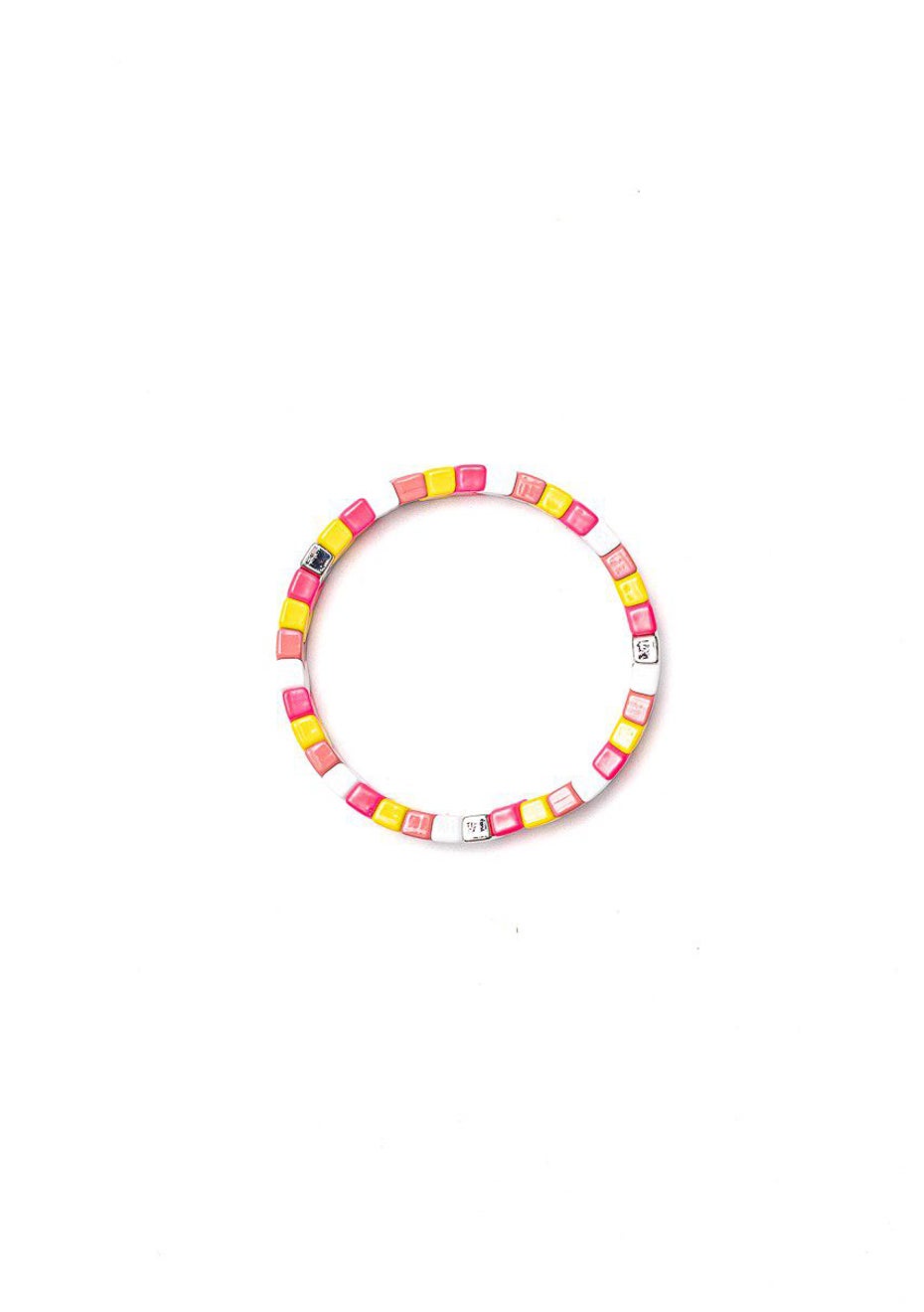 Stretchy bracelet with enamel beads in bright pink and yellow tones