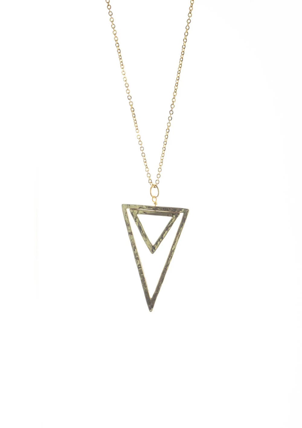 Gold plated chain necklace with a pendant consisting of two triangles. 40cm + 5cm extension