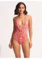 Seafolly - Poolside Plunge One Piece - Pink Chintz