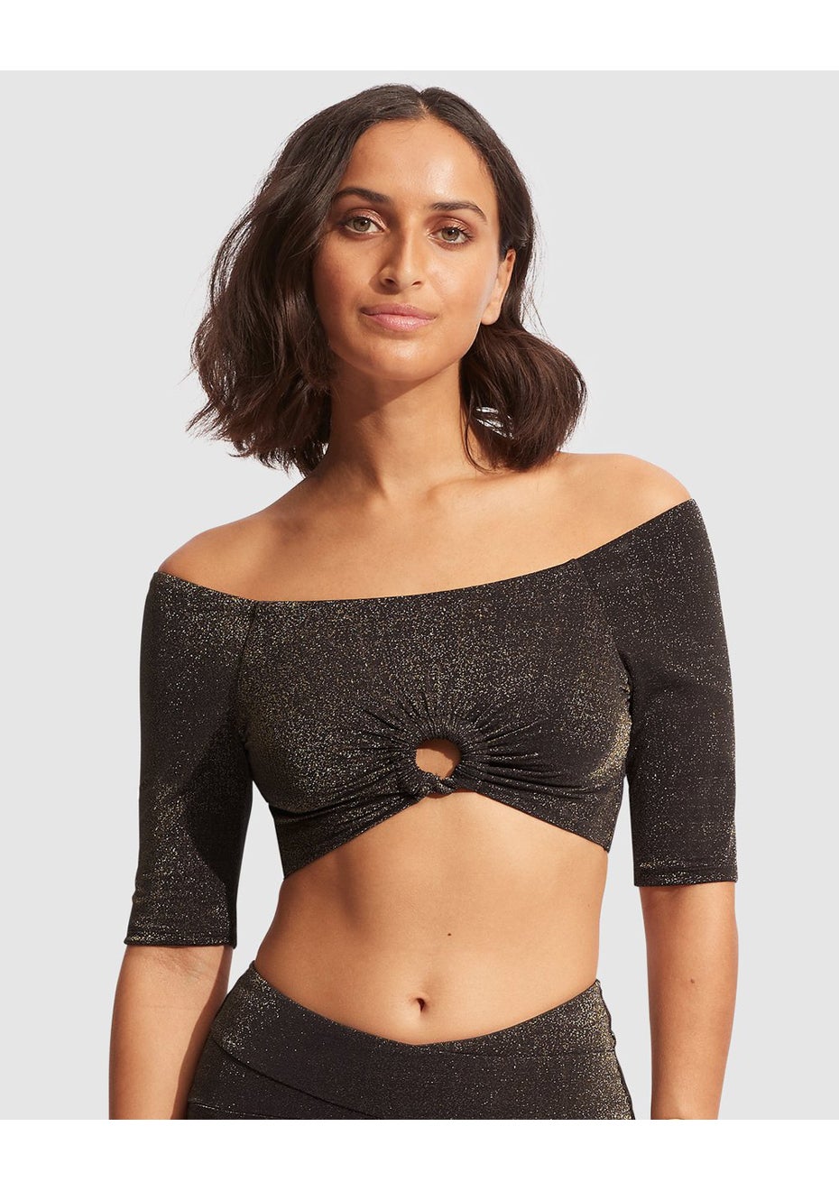 Seafolly - Poolside Twist Ring Crop Top - Sepia