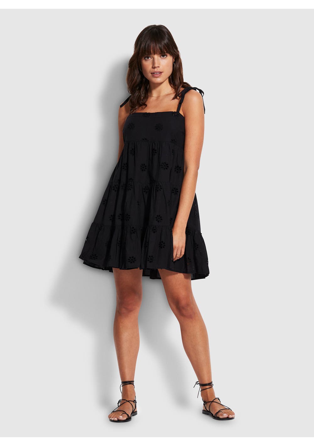 Tiered Detailing, Tie Straps For The Perfect Fit, Side Seam Pockets, Thigh Length.