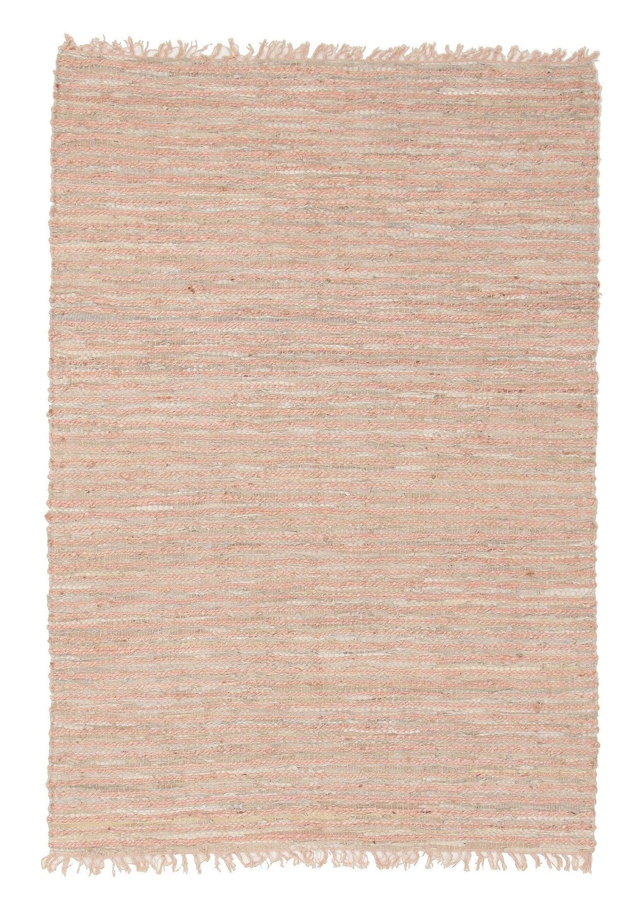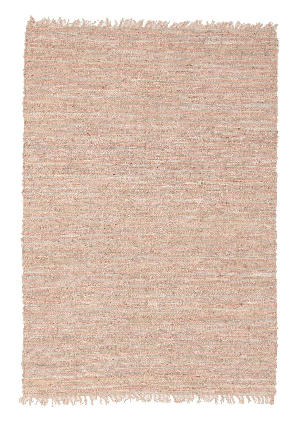 Valparai is a fringed rug handwoven from eco-friendly jute dyed a nude pink and greyish upcycled leather (a grey-beige or 'greige'). A pretty & bohemian take on the popular flatweave, this rug is revsersible and would suit a lounge, dining or bedroom or even a little girl's playroom. Because it is a flatweave, you may wish to add a non-slip underlay (available on Miss Amara or at your local hardware store) to prevent your new rug from moving or buckling.