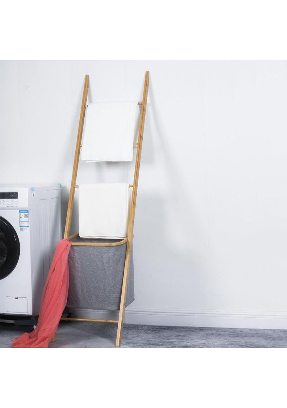1 x Bamboo Wall Leaning Ladder Laundry Basket Shelf